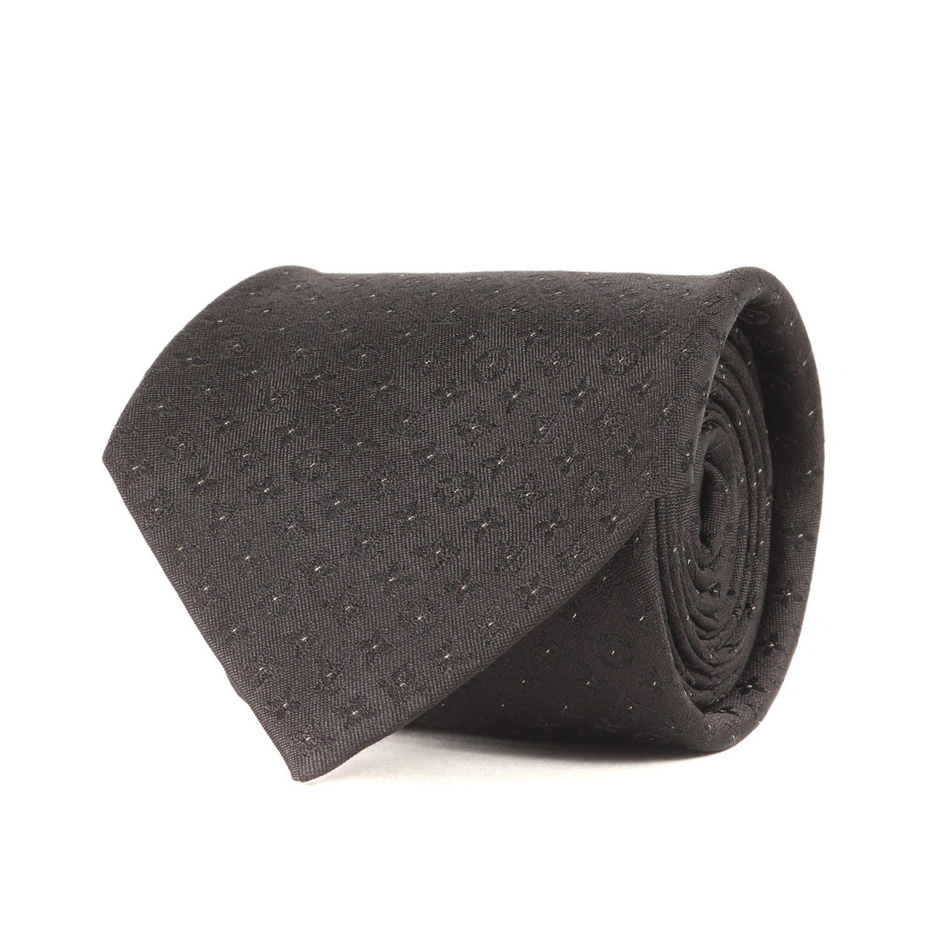 LOUIS VUITTON Louis Vuitton Tie, 24K Gold Thread, Monogram Silk Cravate, M75294, Black, Men\'s, K4618