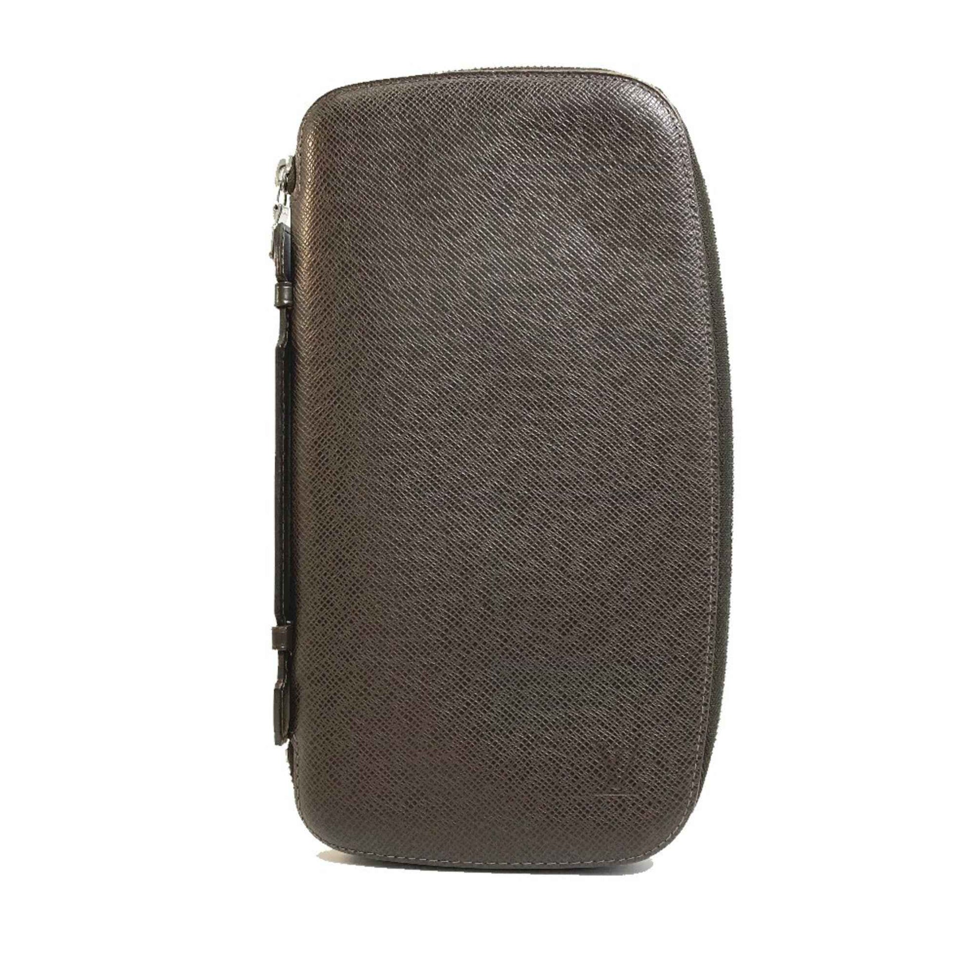 LOUIS VUITTON M30658 Taiga Organizer Atoll Zip-Around Travel Case in Leather, Men\'s Grizzly Dark Brown