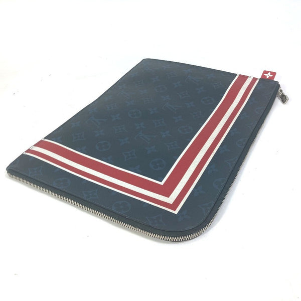 LOUIS VUITTON M61679 Monogram Cobalt Pochette Jour GM Striped Canvas Pouch Clutch Bag, Navy