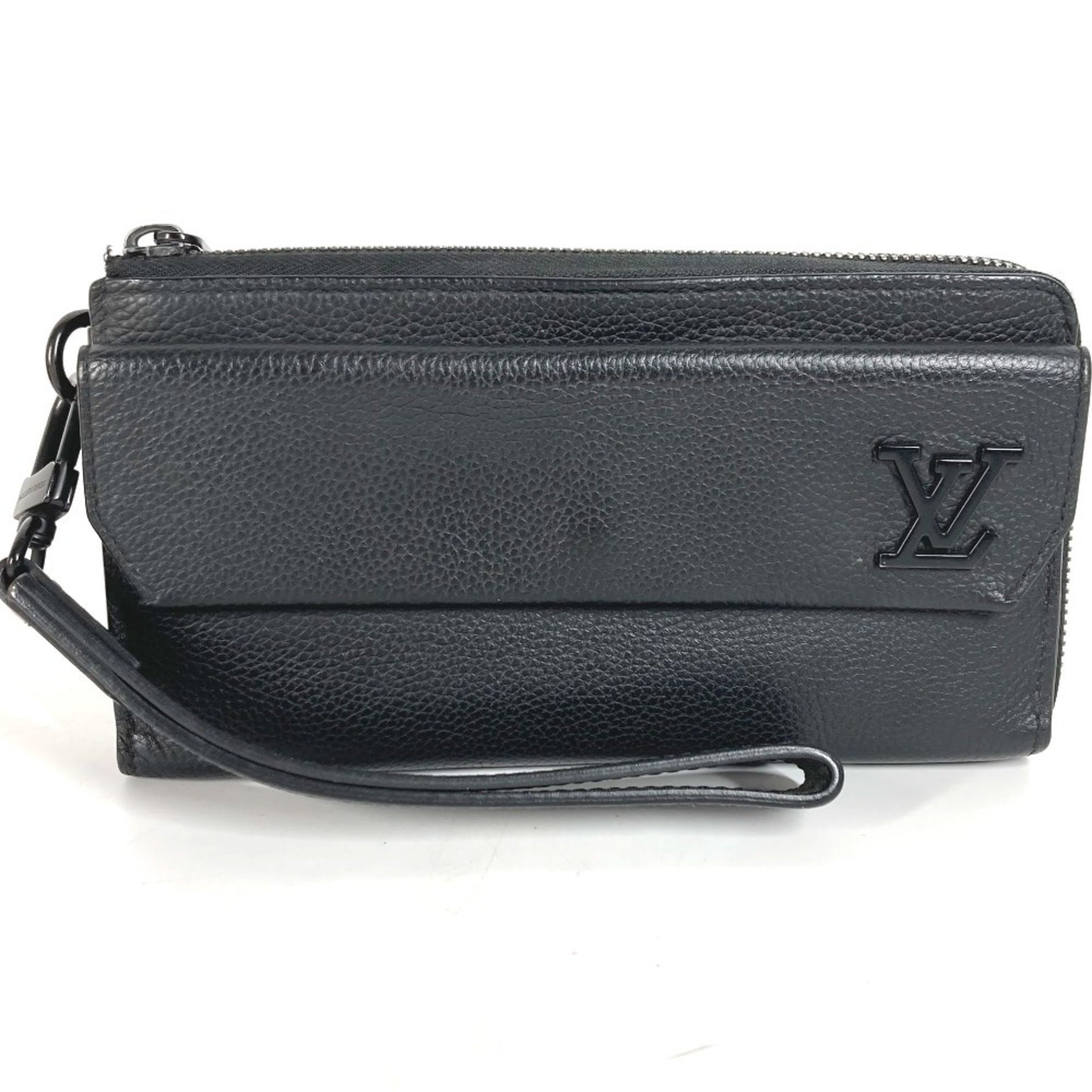 LOUIS VUITTON M69831 Aerogram Zippy Wallet, Round Zipper, Grained Leather, Men\'s, Noir Black