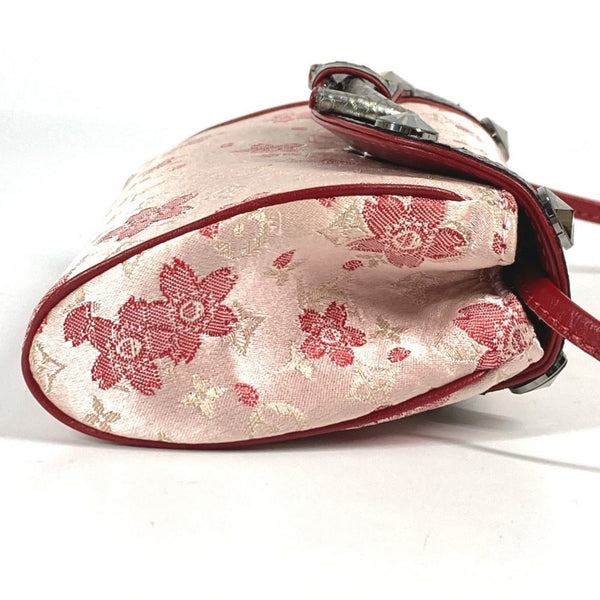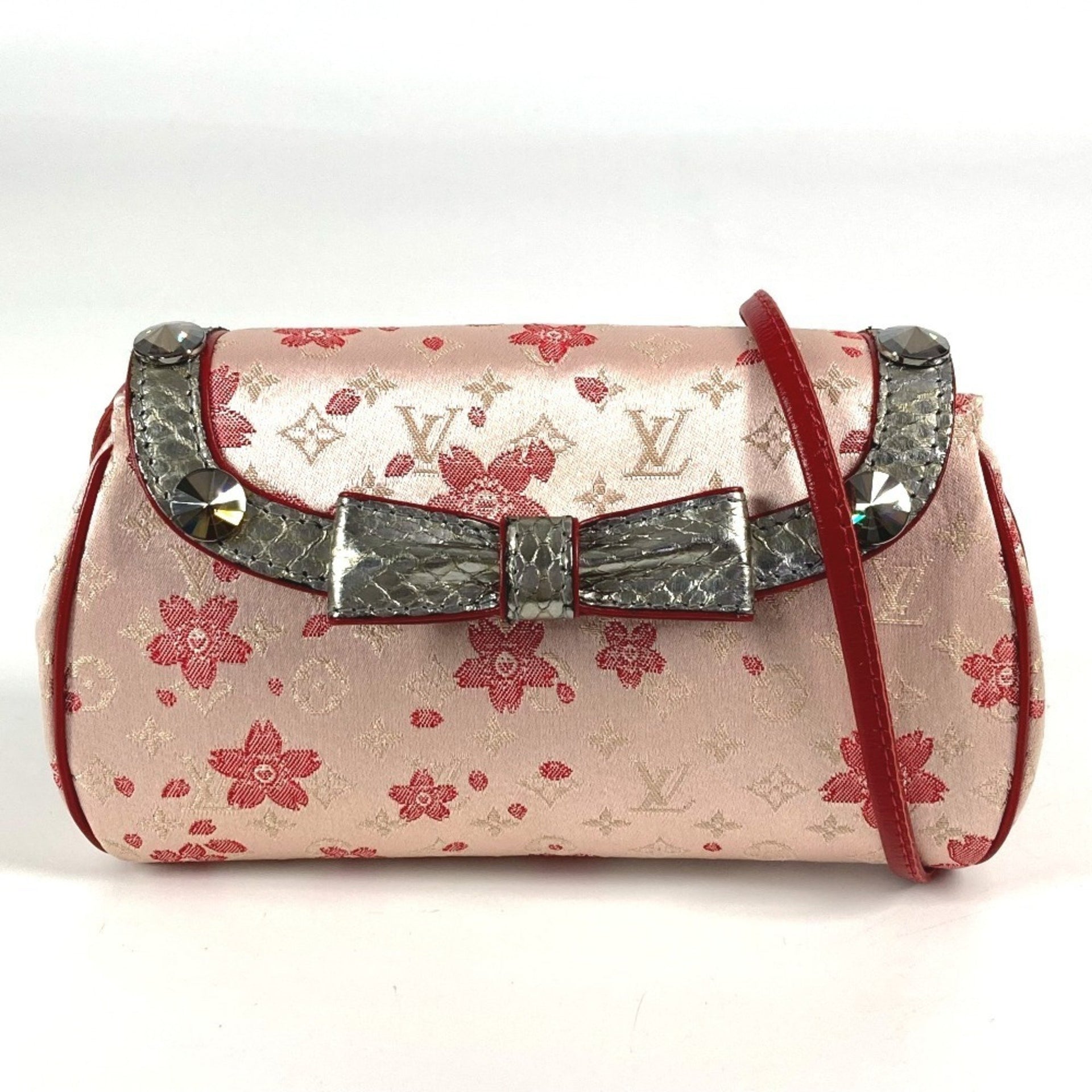 LOUIS VUITTON M92588 Monogram Satin Cherry Blossom Griotte Pochette Flap Rhinestone Shoulder Bag in Pink