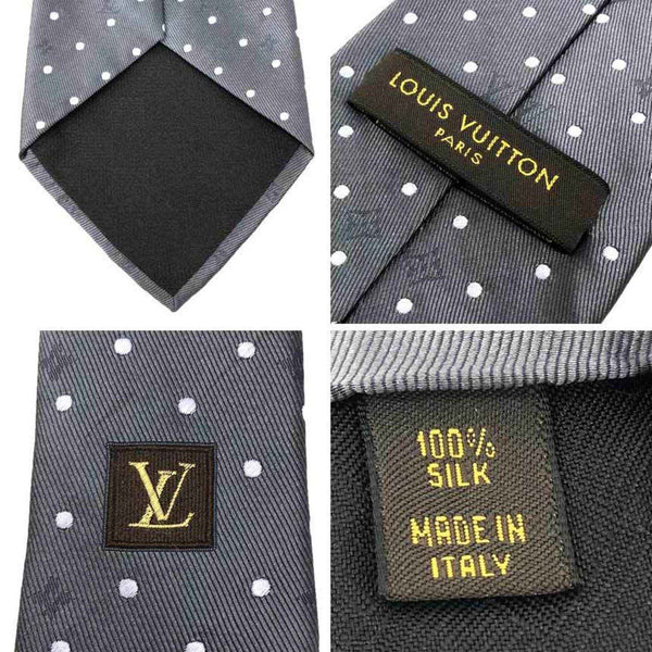 LOUIS VUITTON Monogram Dot Gray 100% Silk Tie for Men