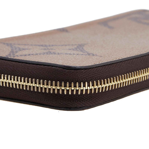 Louis Vuitton Monogram Giant Reverse Long Wallet with Round Zipper, M69353, Brown Leather, Women's, LOUIS VUITTON