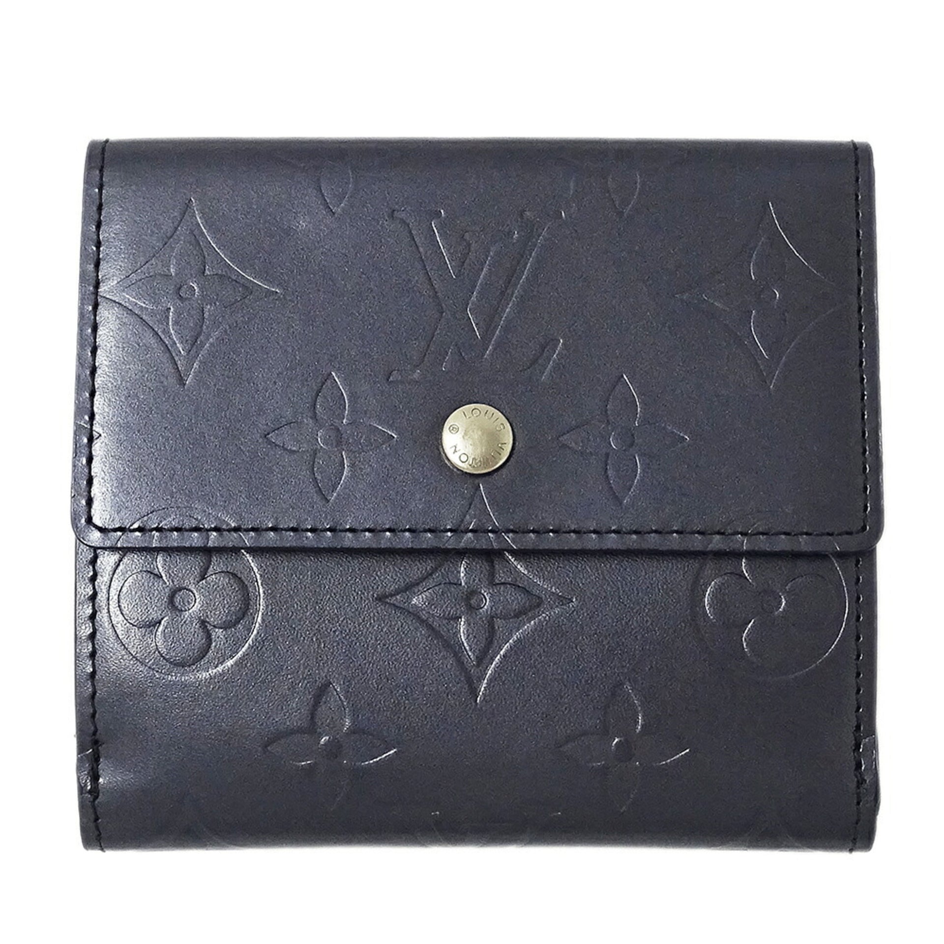 Louis Vuitton Monogram Matte Wallet for Men and Women, Porte Monnaie Carte Credit Blue M65115, Mini Compact