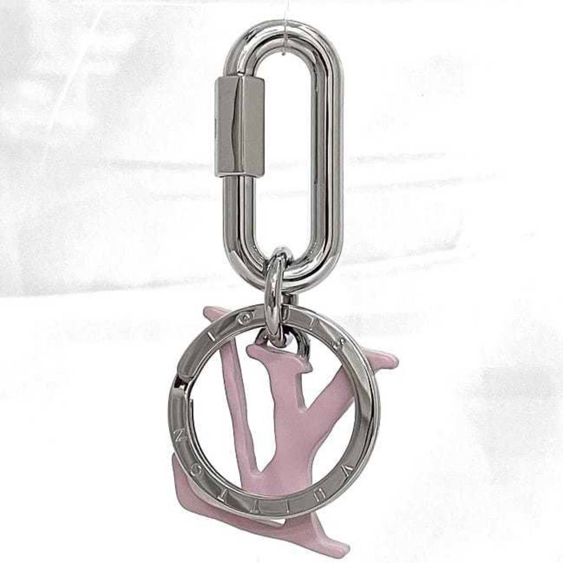 Louis Vuitton Porte-Cles Keychain, LV Shape, f-23974, Silver with Purple Pink, MP2615, Metal, LE1109. LOUIS VUITTON Key Ring, Charm Holder, Men\'s and Women\'s, Charm.