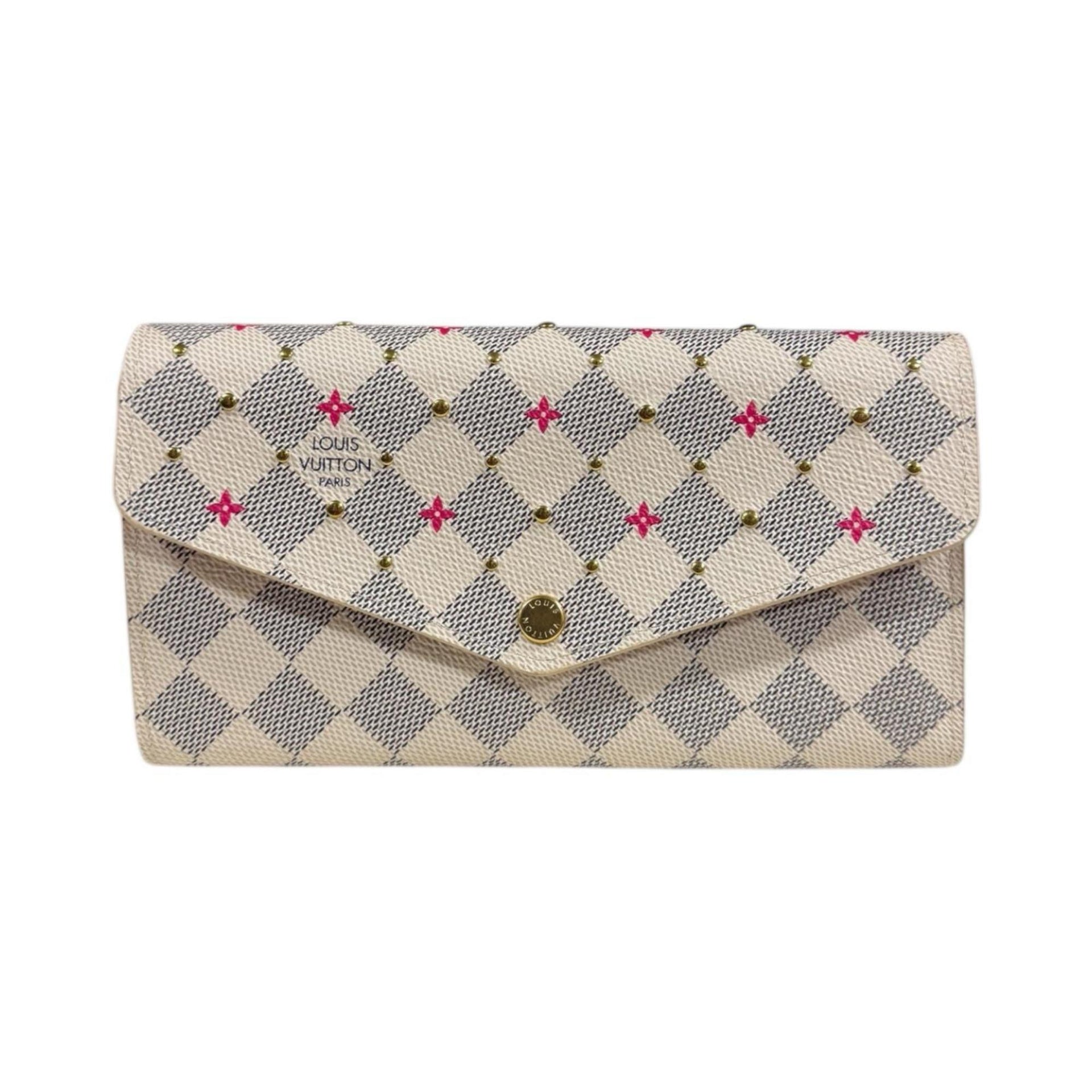 Louis Vuitton Portefeuille Sarah Damier Azur Studded Long Wallet, Canvas, M45296, Women\'s, LOUIS VUITTON