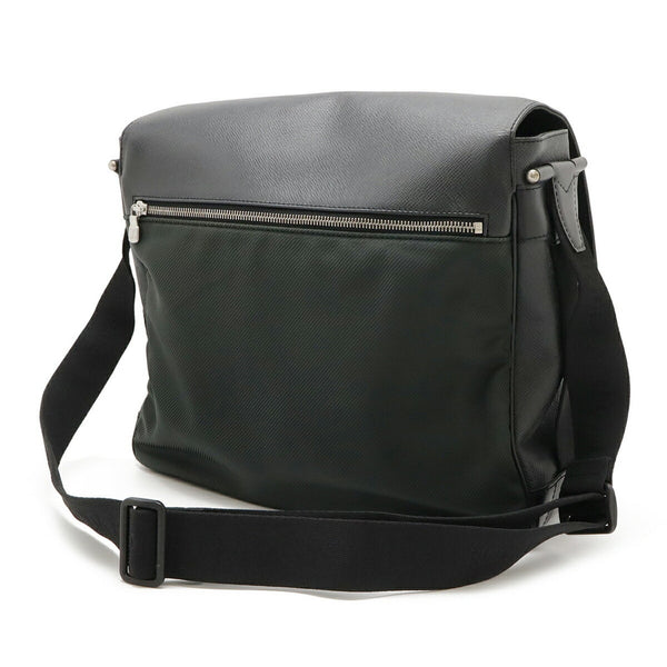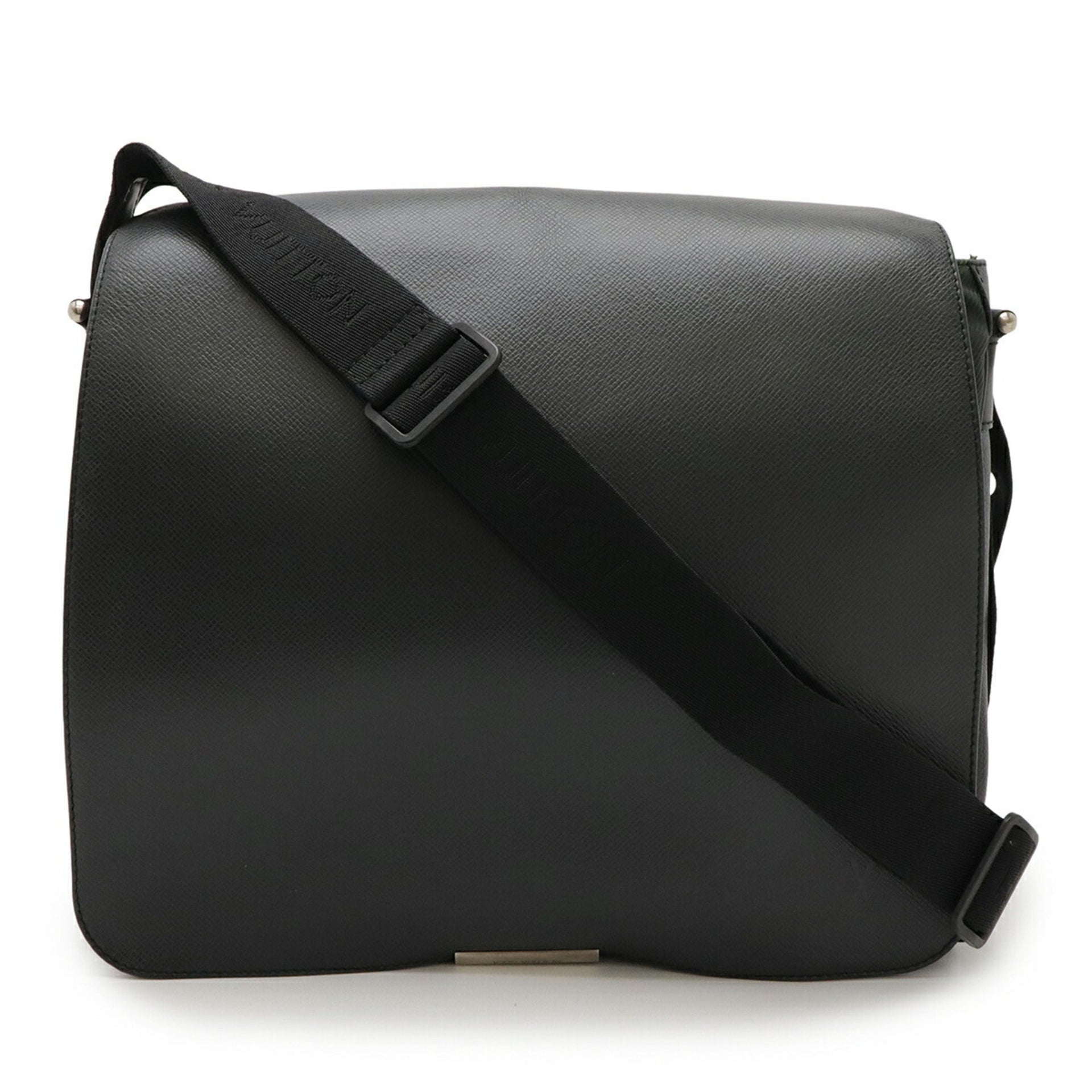 LOUIS VUITTON Taiga Victor Shoulder Bag, Leather and Canvas, Ardoise, Black, M30142