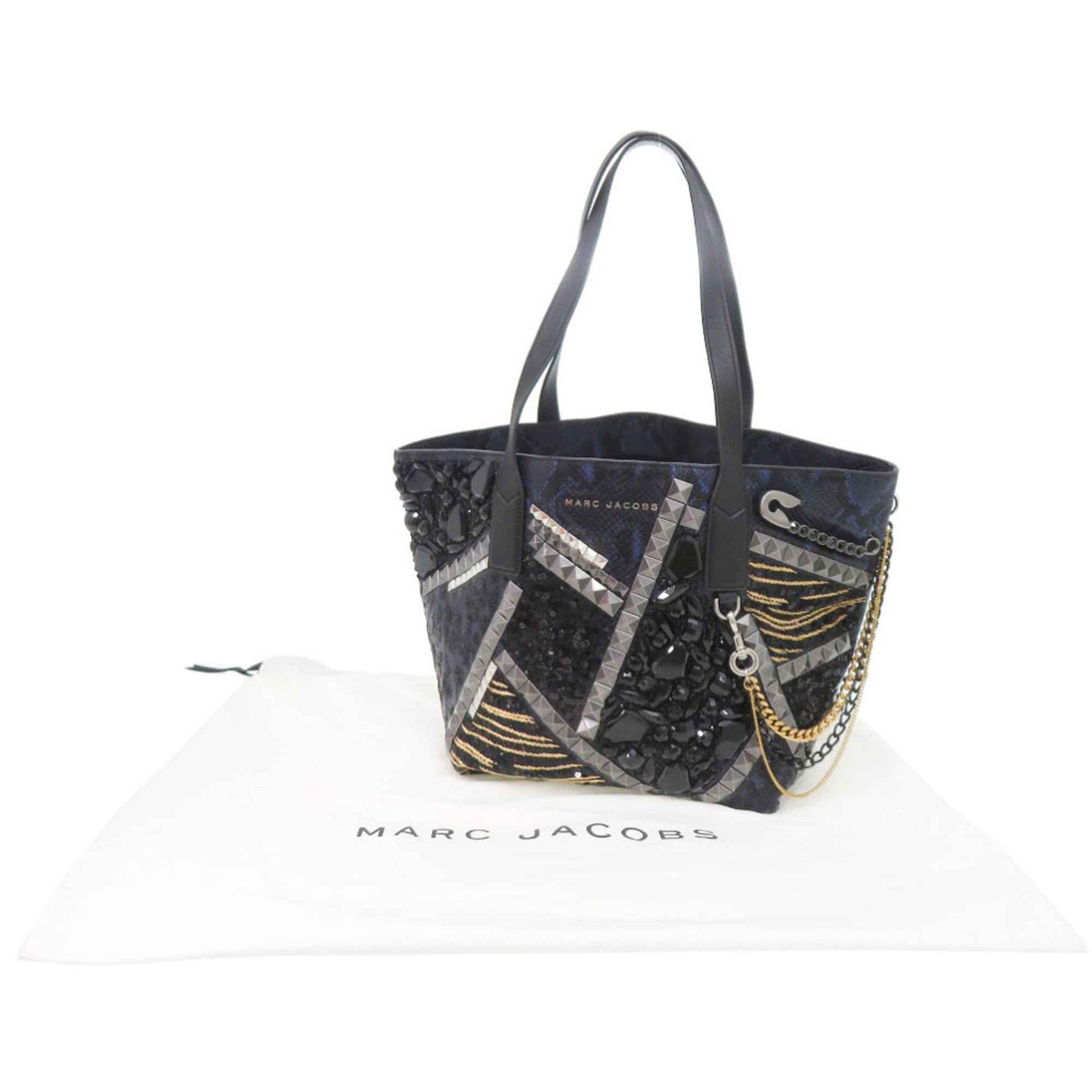 Marc Jacobs Blue Tote Bag with Pouch, Chain, Studs, and Embossed Leather, 0621 MARC JACOBS