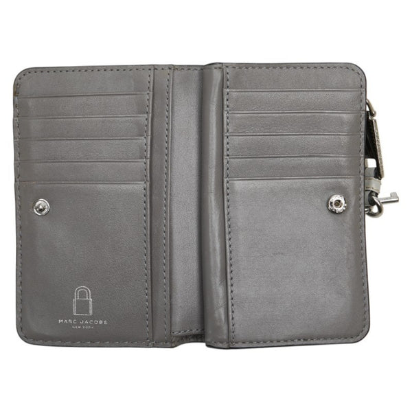 Marc Jacobs logo bifold wallet in gray leather for women.