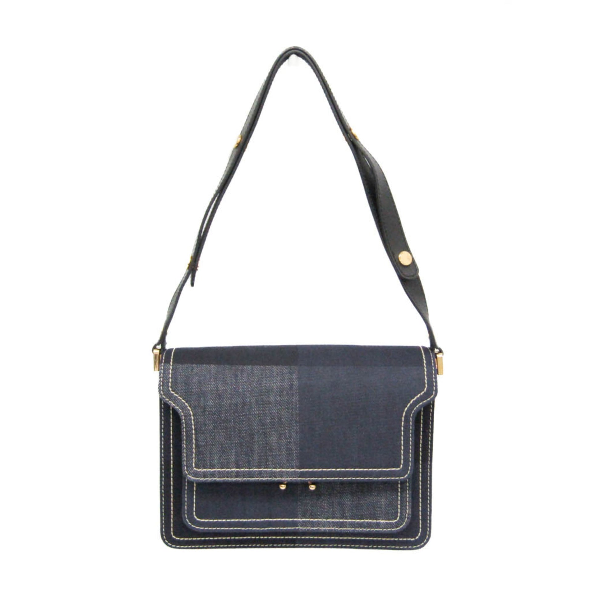 Marni Trunk Bag Women\'s Denim Shoulder Bag Black,Navy