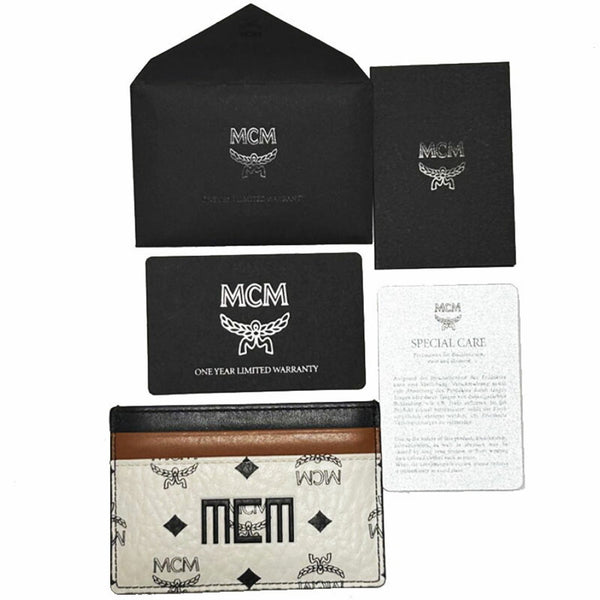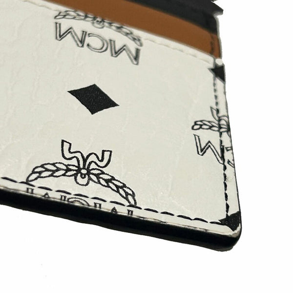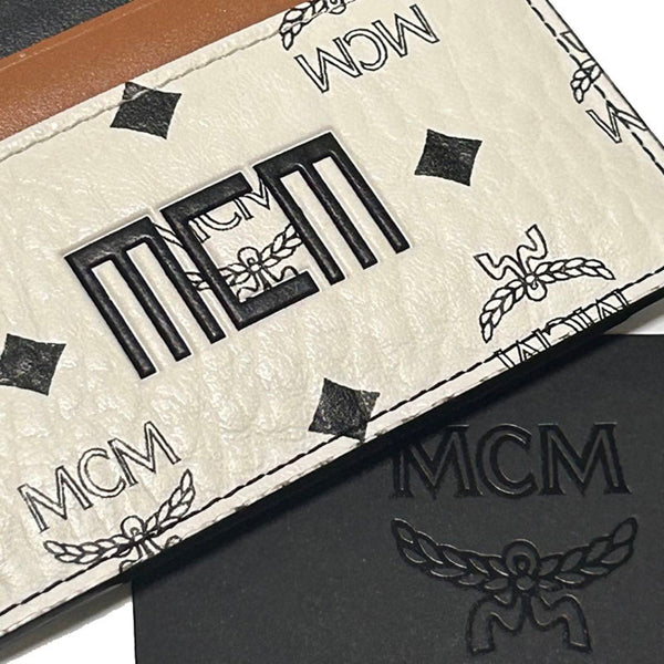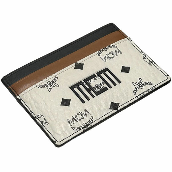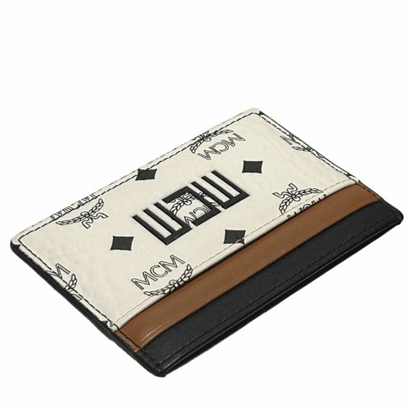 MCM Card Case, Commuter Pass Case for Men and Women, White/Brown/Black Leather
