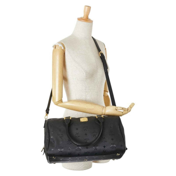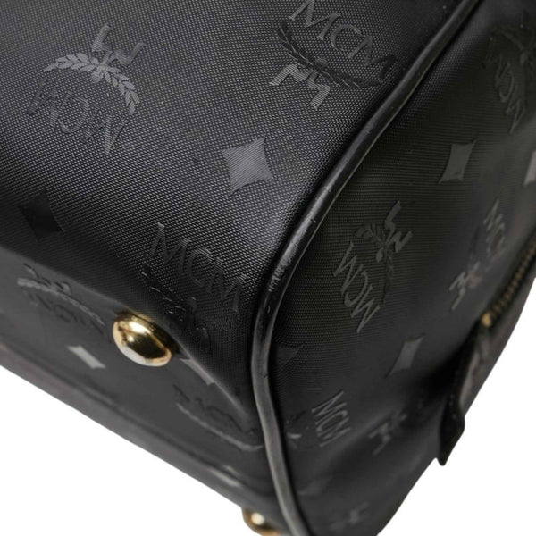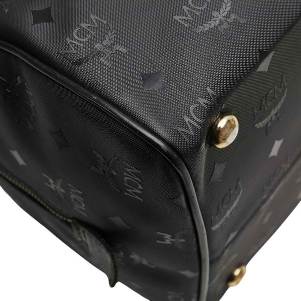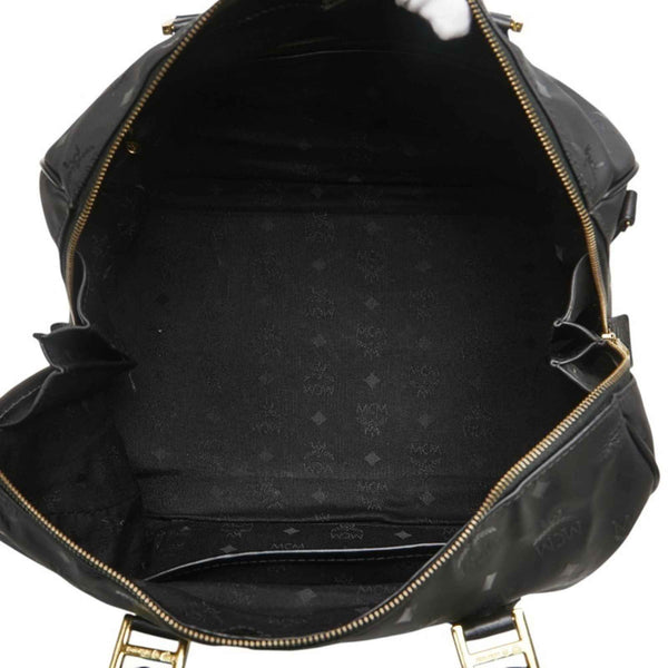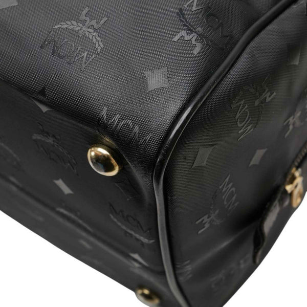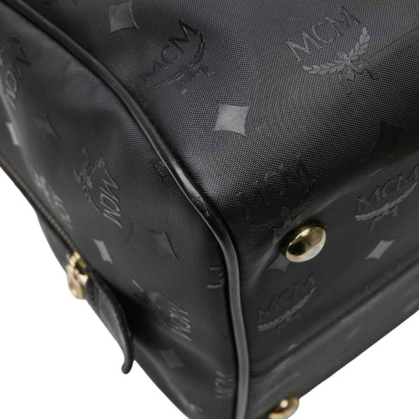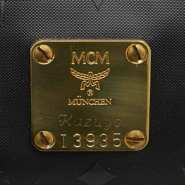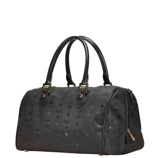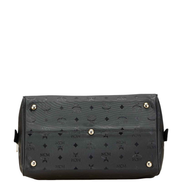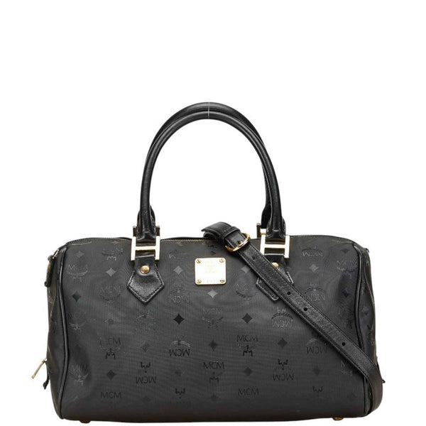 MCM Visetos Logogram Boston/Shoulder Bag, 2-Way, Black Nylon and Leather, Women\'s