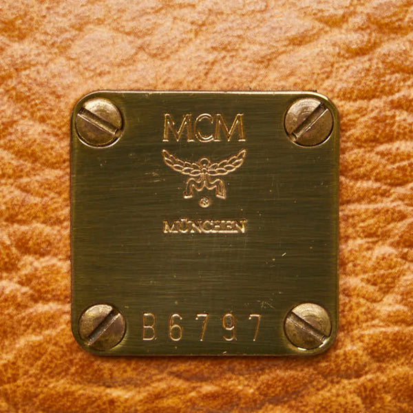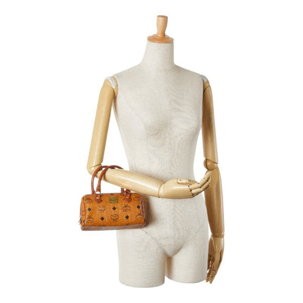 MCM Visetos Logogram Handbag/Mini Boston Bag in Brown PVC and Leather for Women