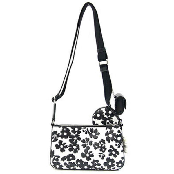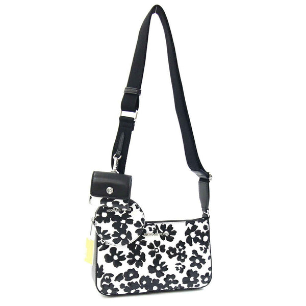 Michael Kors Floral Crossbody Shoulder Bag 35S5STVC5Y in Black and White Leather with Sequins, Coin Purse, Earphone Case. Women\'s.