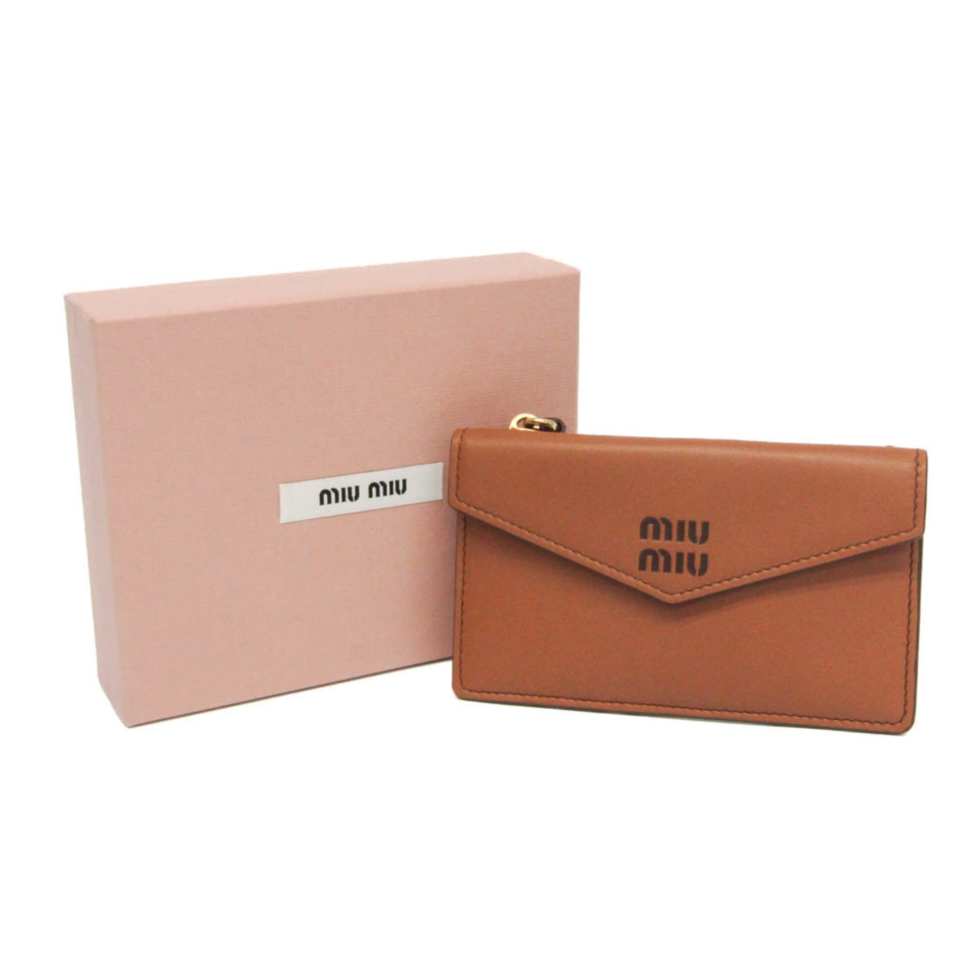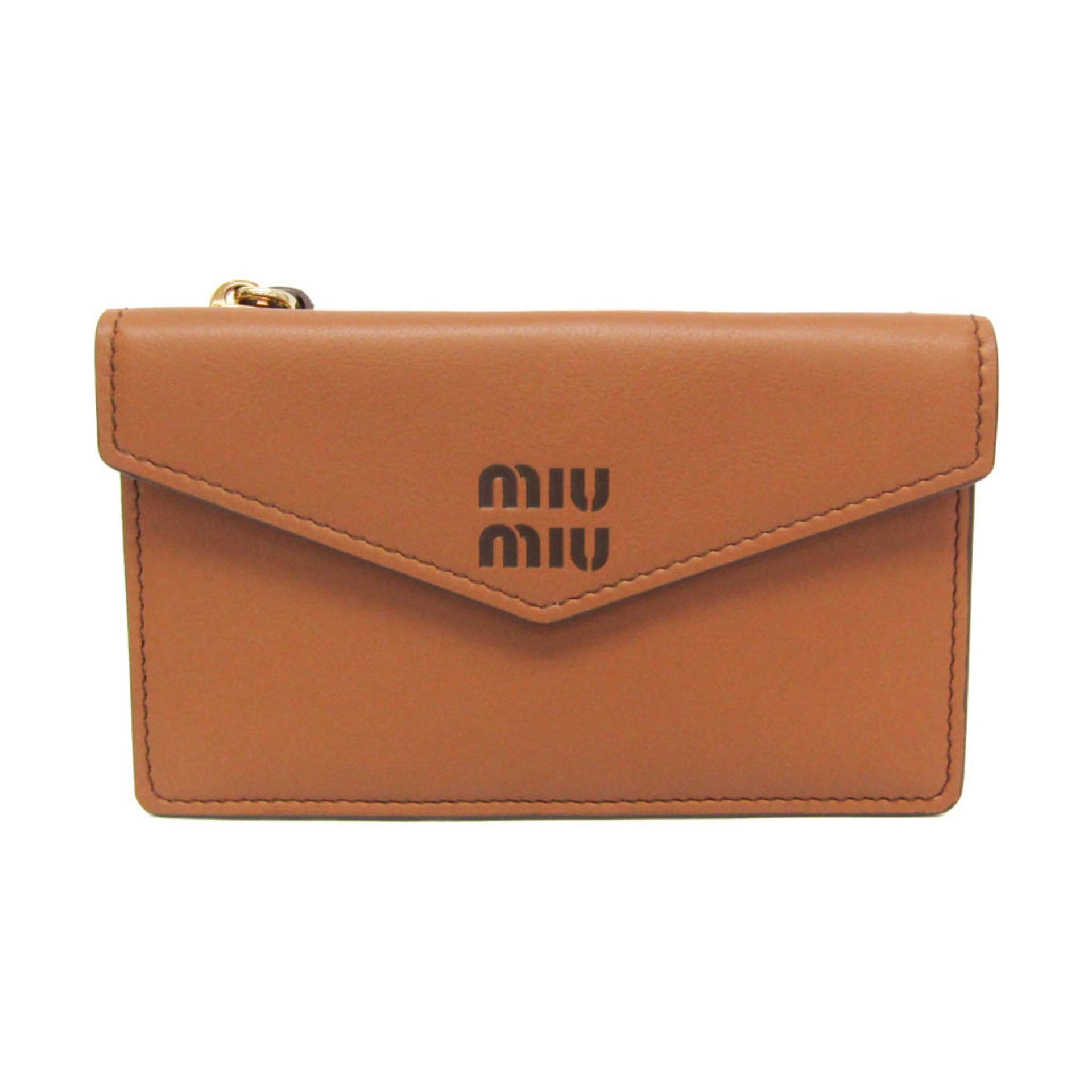 Miu Miu FINE CALF LOGO Coin Card Holder 5MF060 Women\'s Leather Coin Purse/coin Case Brown