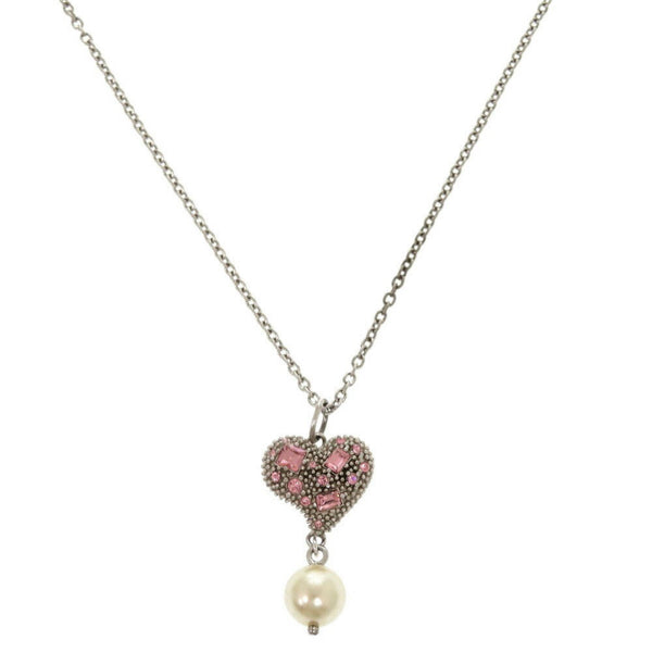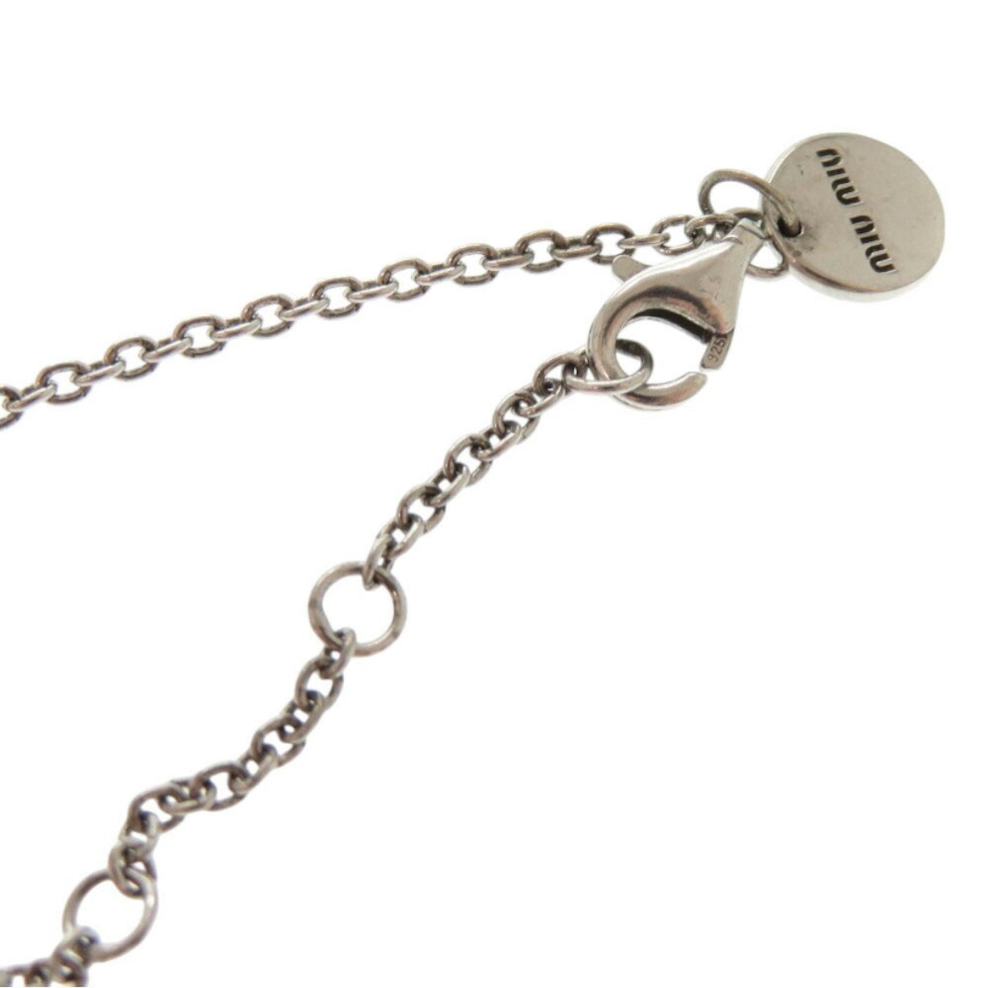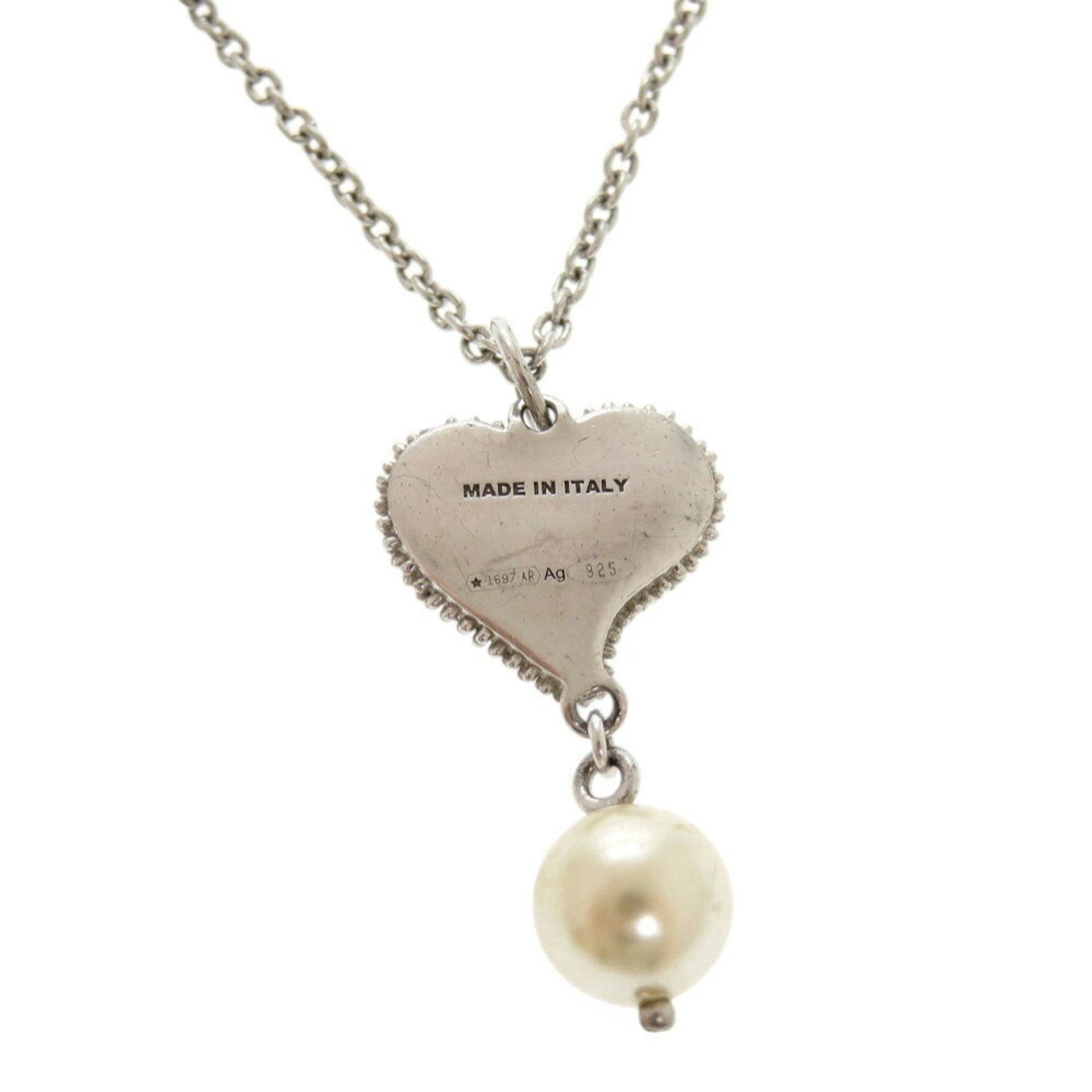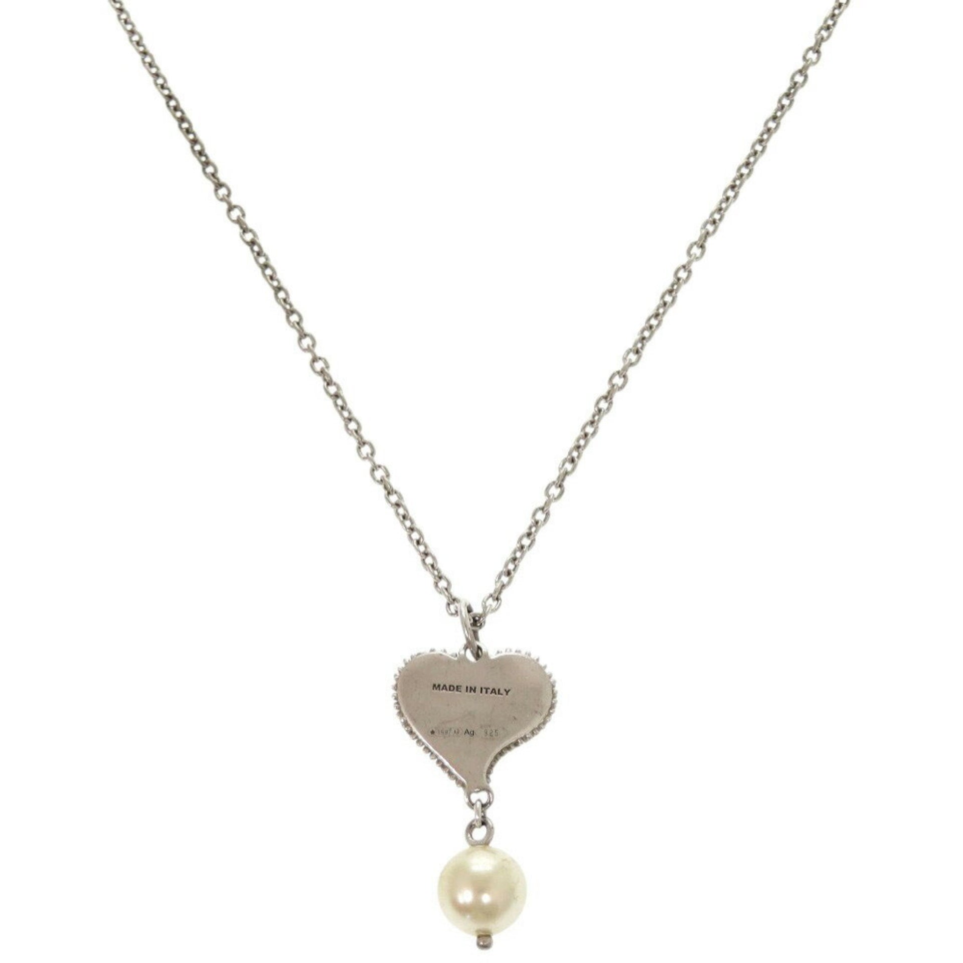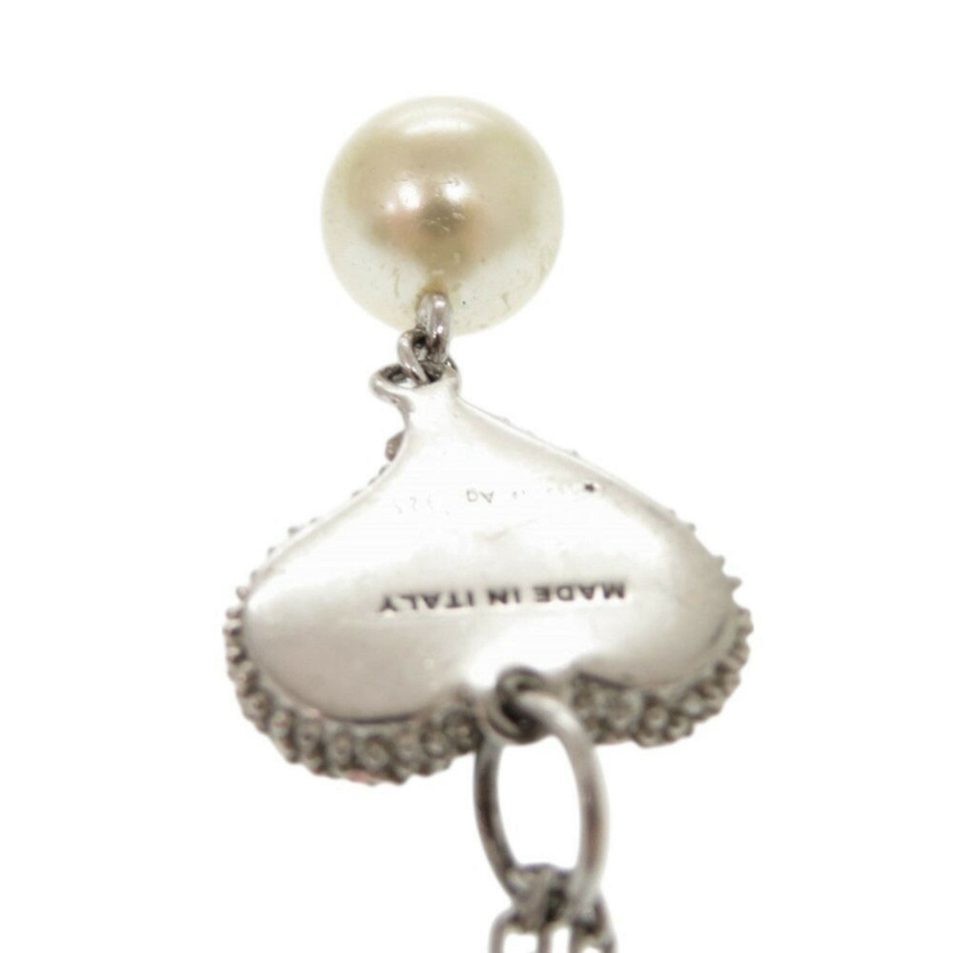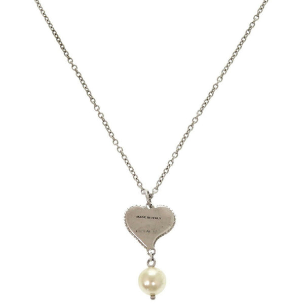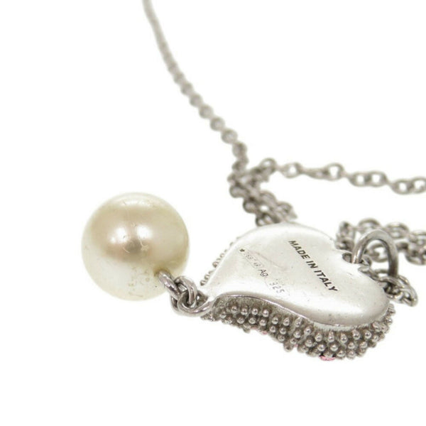 Miu Miu Miu Heart Design Silver 925 Rhinestone Fake Pearl Pink Necklace 0361MIUMIU