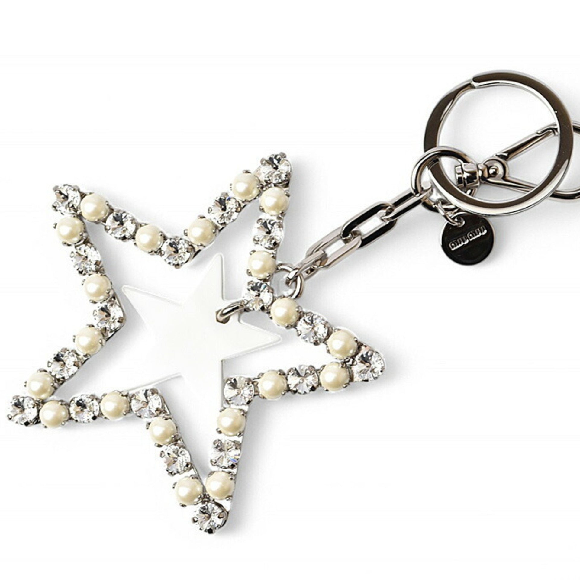 Miu Miu Miu Key Ring Bag Charm Star Motif Rhinestone TRICK 5TM072 BIANCO White