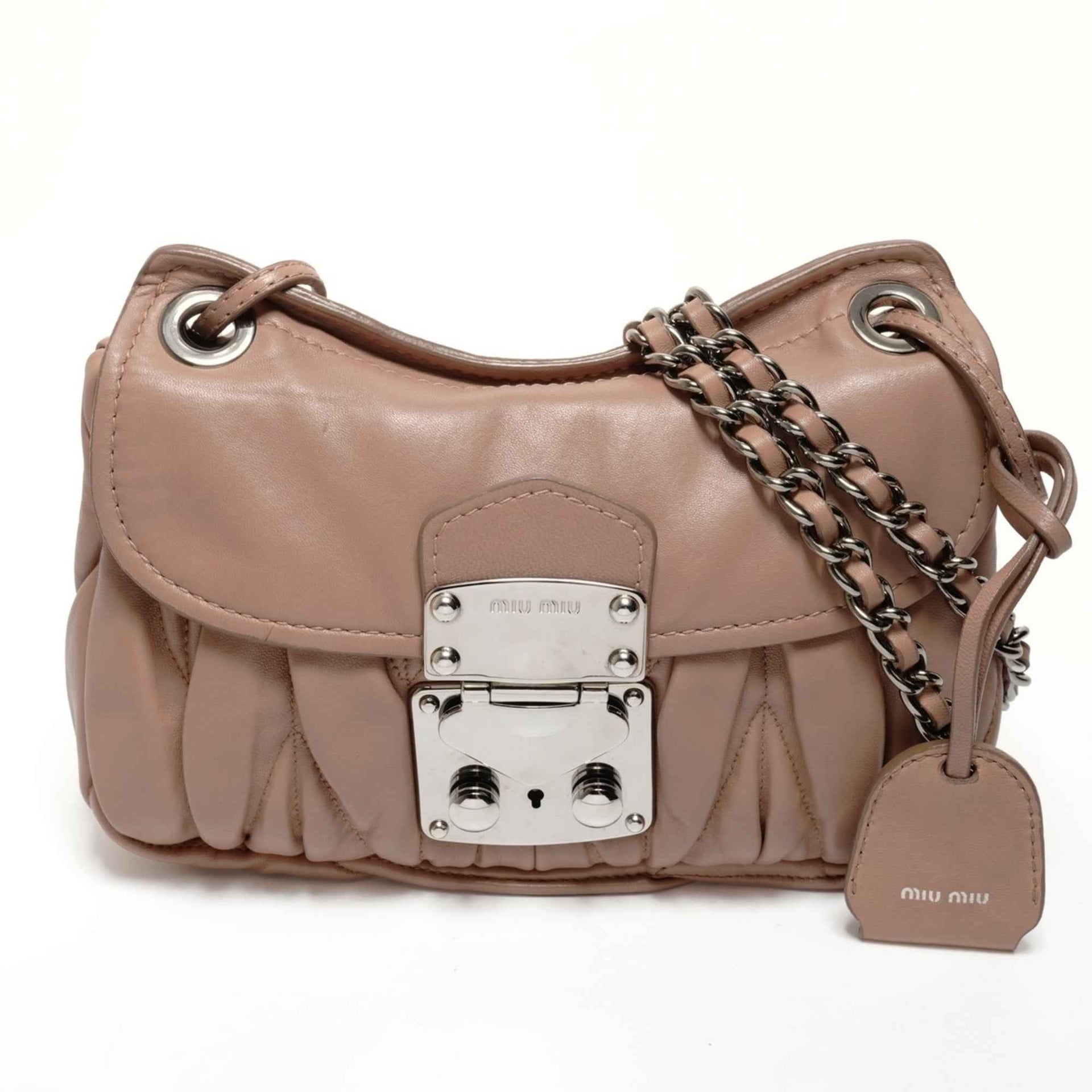 Miu Miu Miu Leather Matelassé Chain Lock Shoulder Bag in Pink