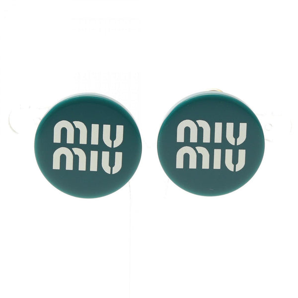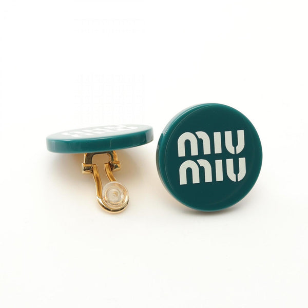 Miu Miu Miu logo earrings in gold-plated Plexiglas, green, for women.