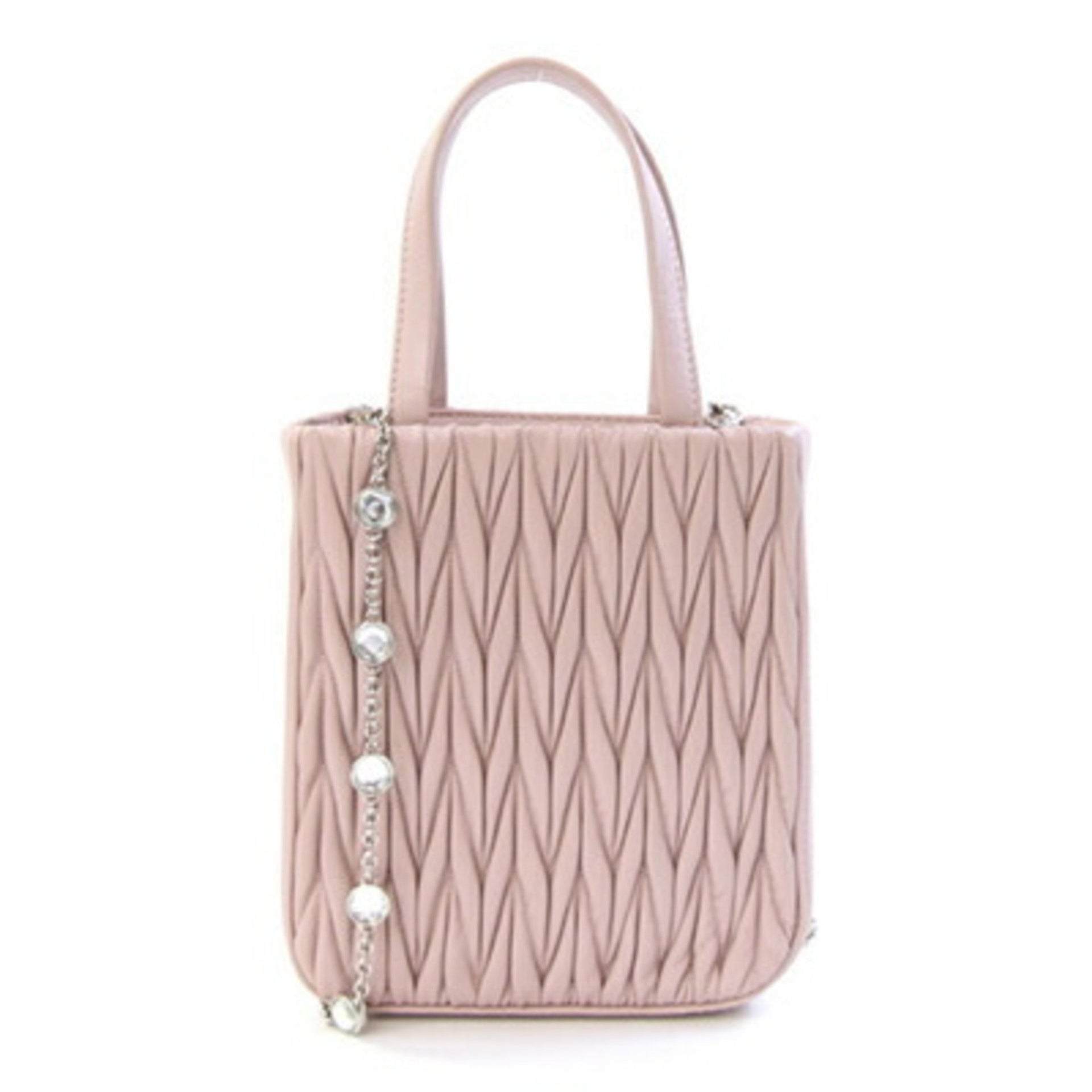 Miu Miu Miu Matelasse Handbag 5BA220 Smoky Pink Leather Shoulder Bag with Chain and Gathered Beads, Women\'s MIU
