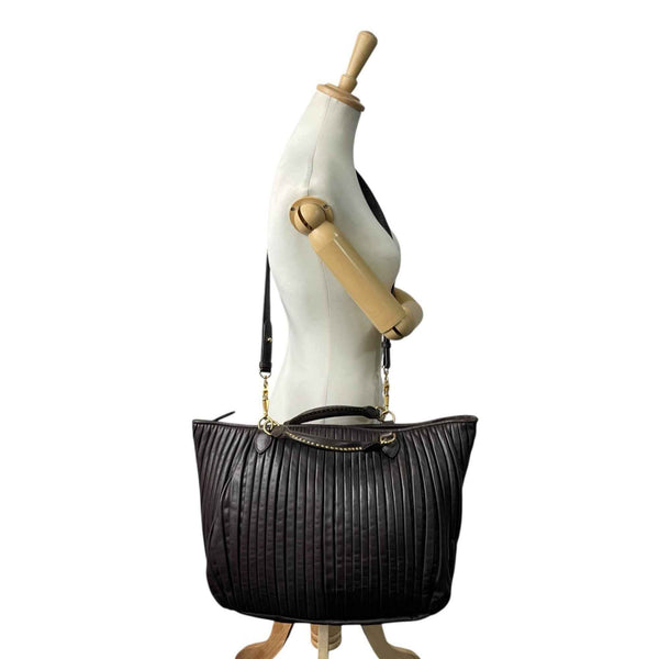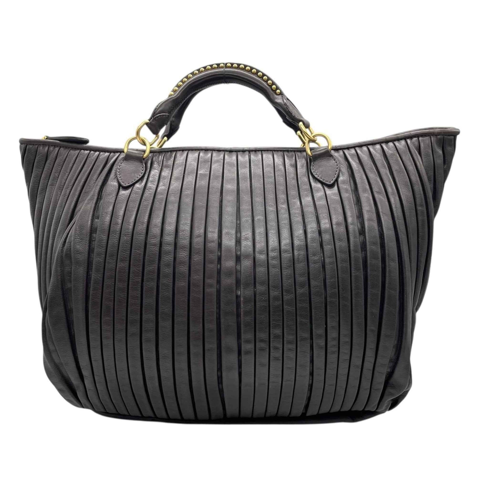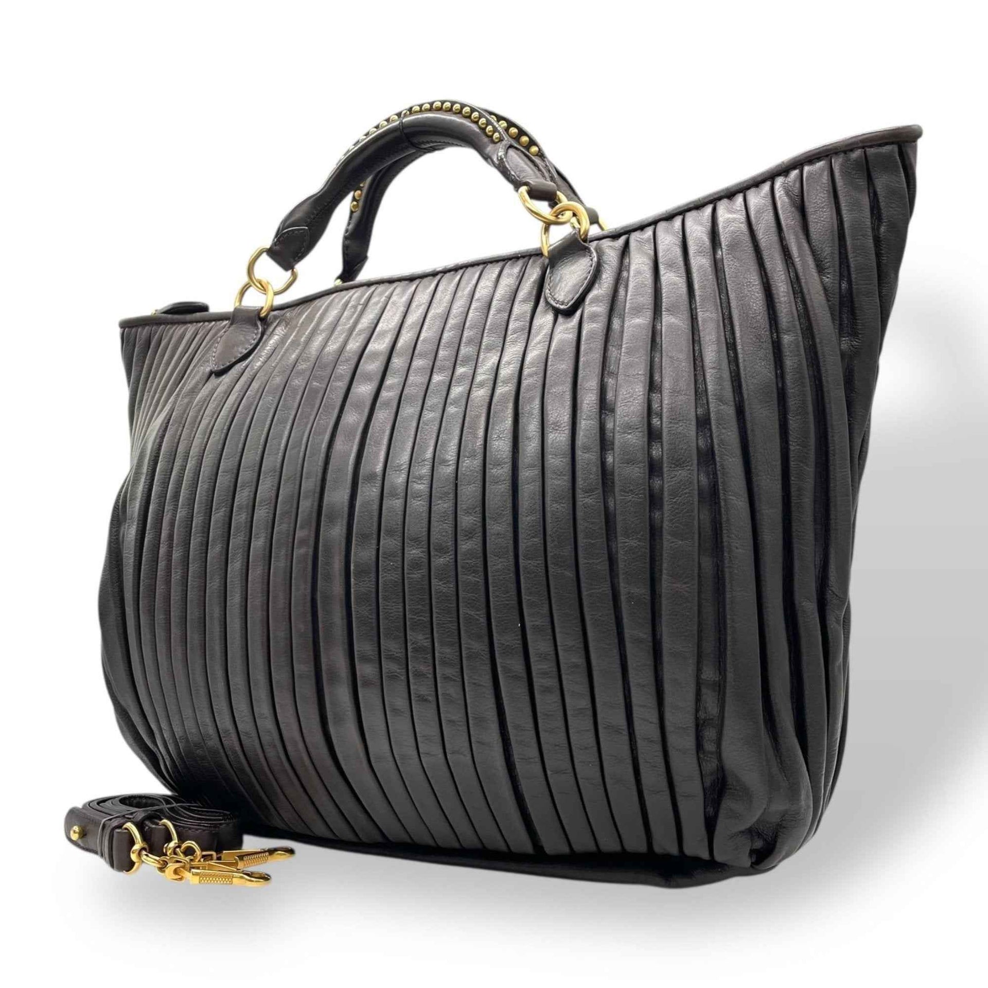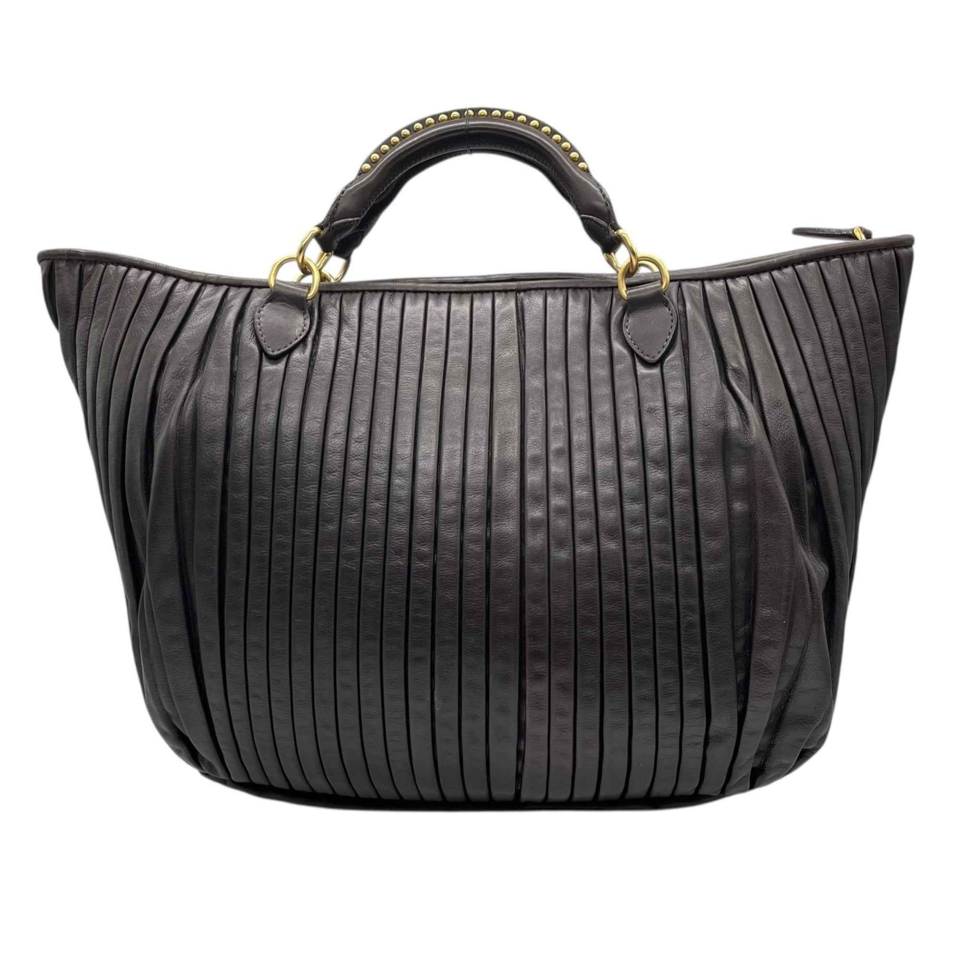 Miu Miu Miu tote bag, handbag, gathered pleated leather with studs, dark brown, gold hardware, women\'s, size C