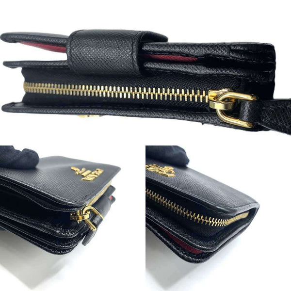 Prada Bi-fold Wallet 1ML018 Saffiano Leather Women\'s Black PRADA