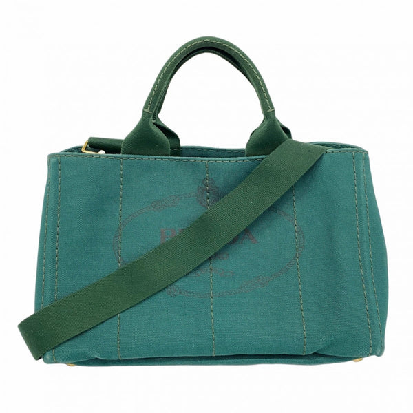 Prada Canapa Canvas Green Handbag, 2-Way Bag for Women
