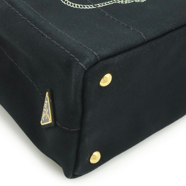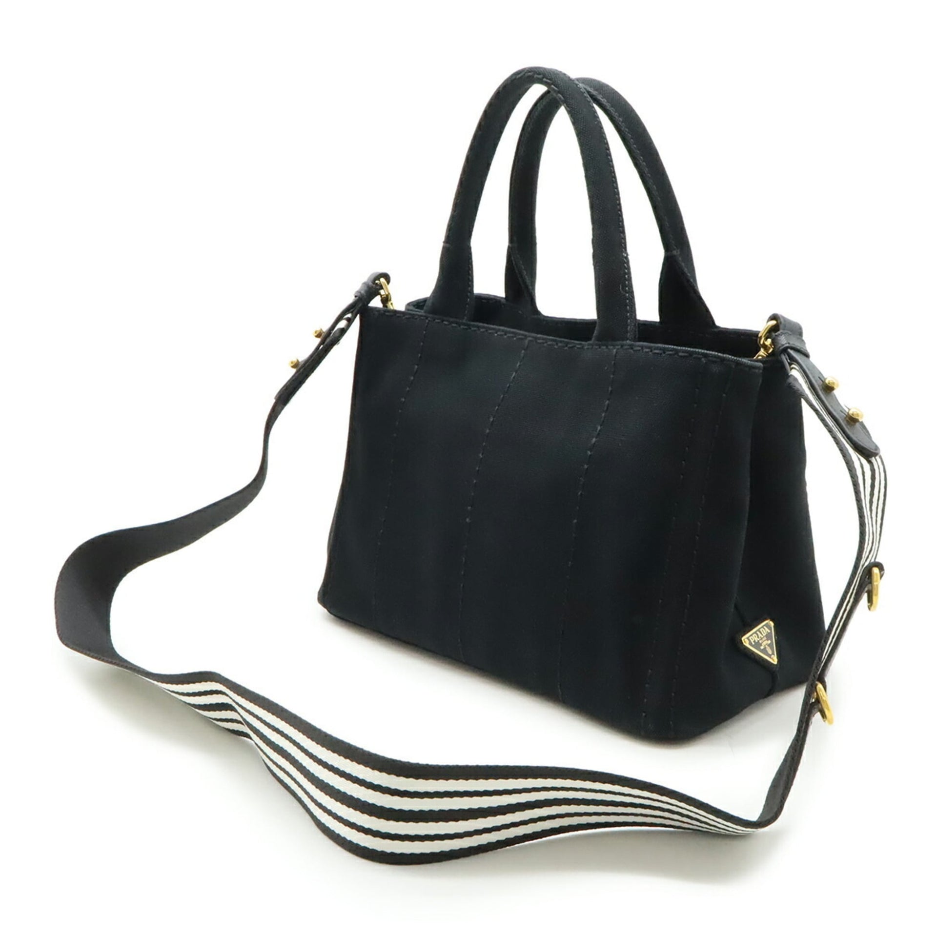 PRADA CANAPA Tote Bag, Shoulder Striped Canvas, Nero, Black, 1BG439