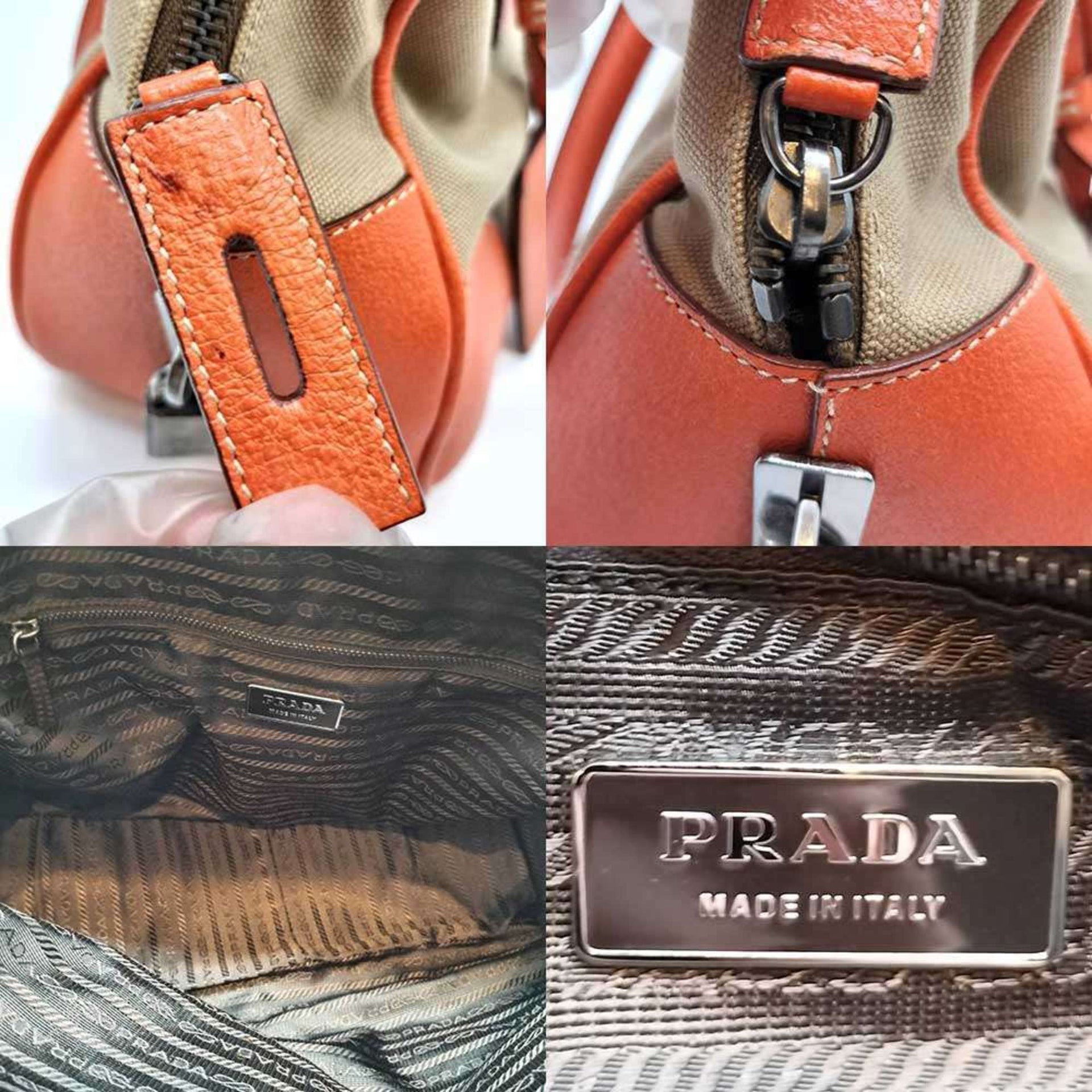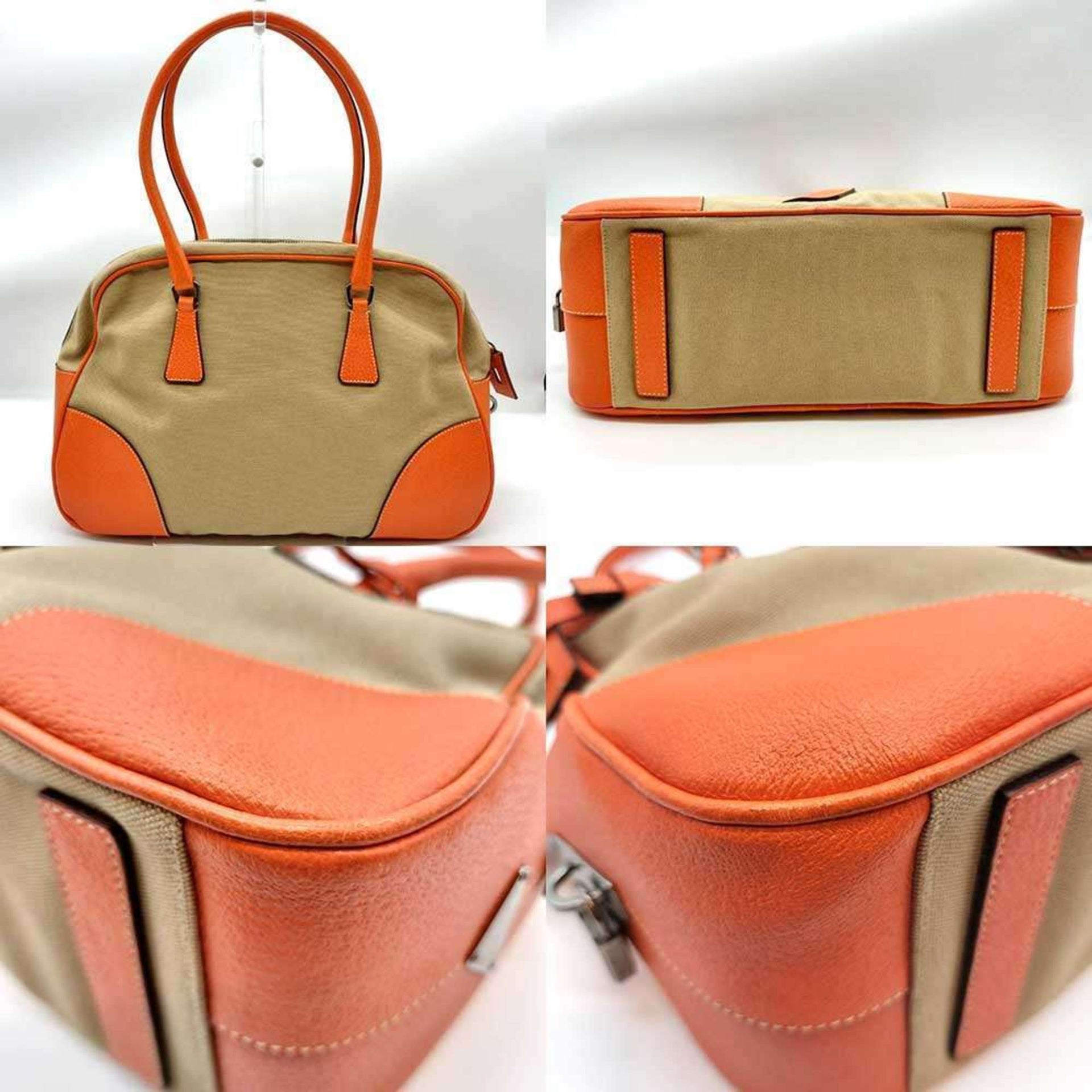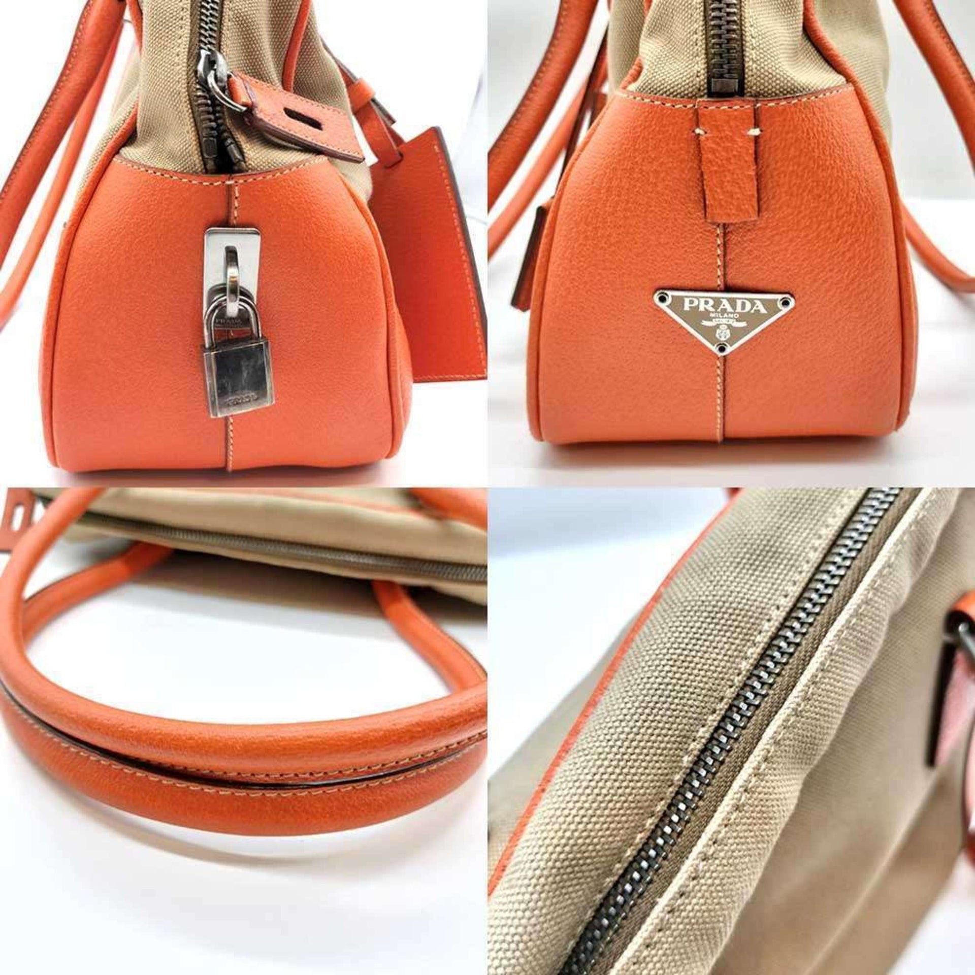 Prada Canvas Handbag Beige Orange PRADA