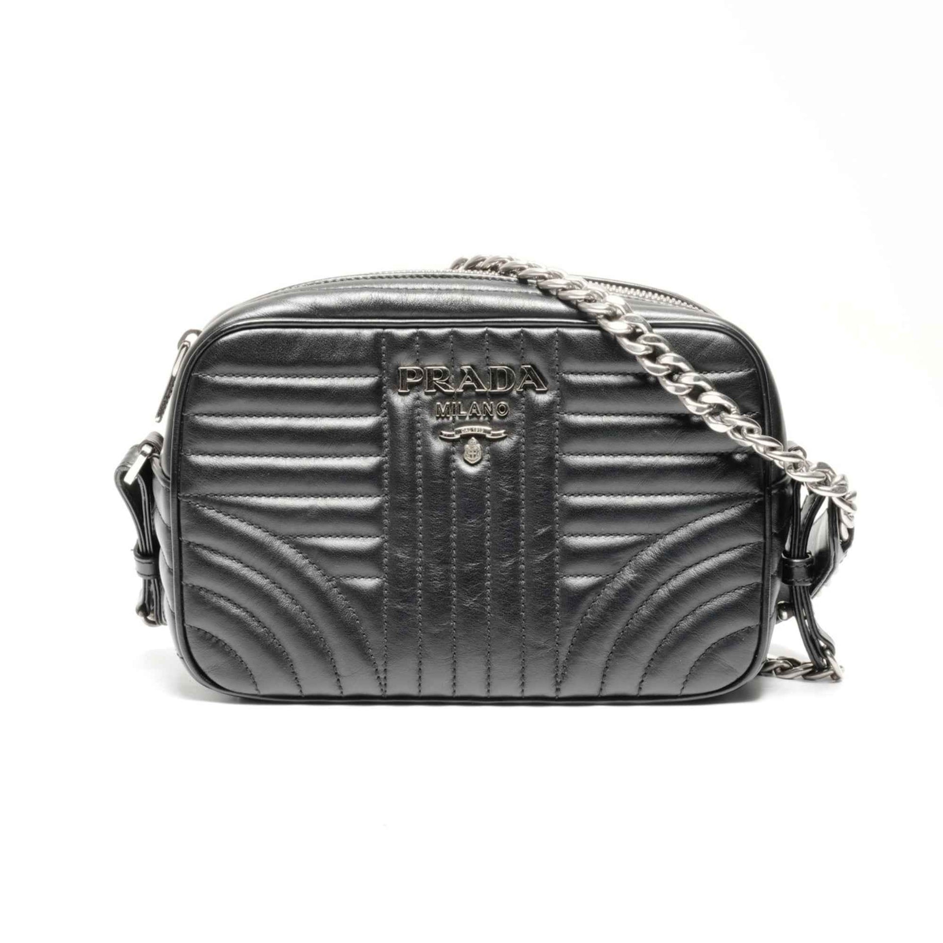 Prada Diagram Camera Bag Leather Chain Shoulder Black
