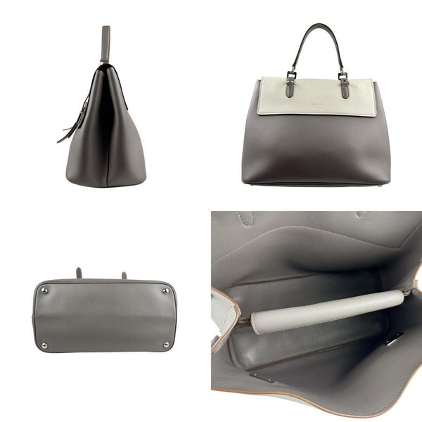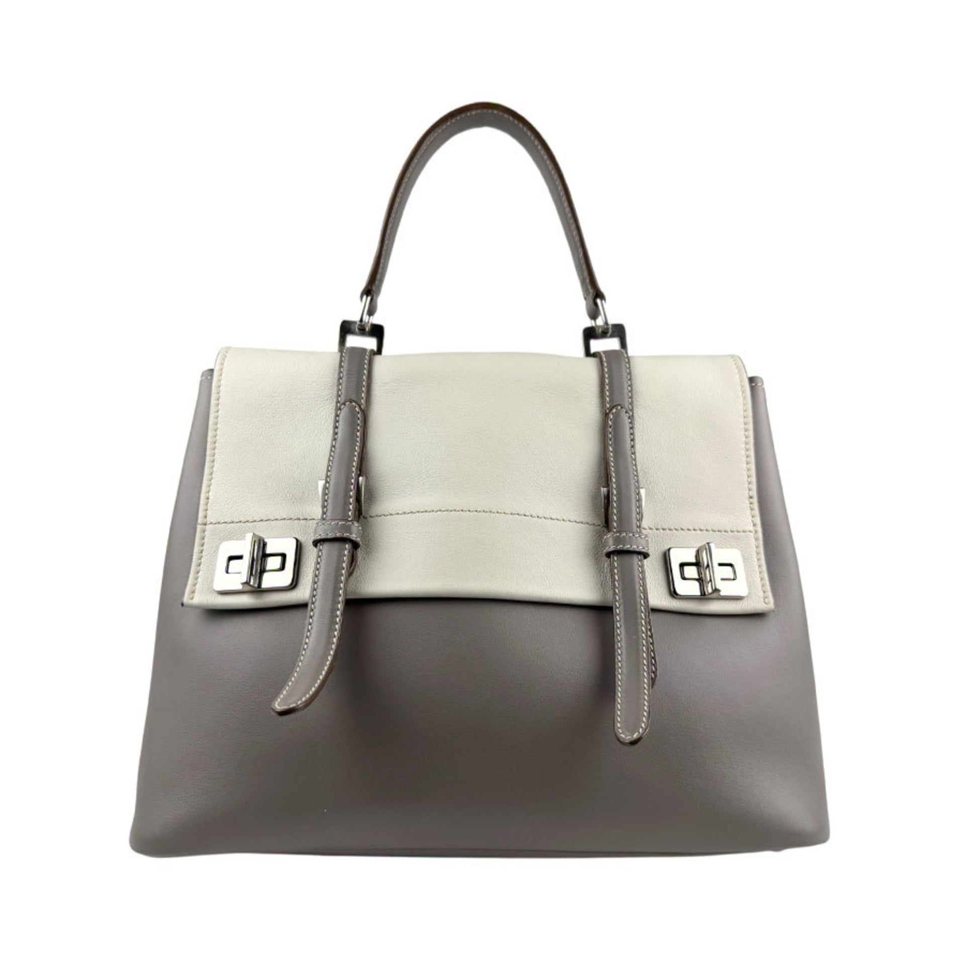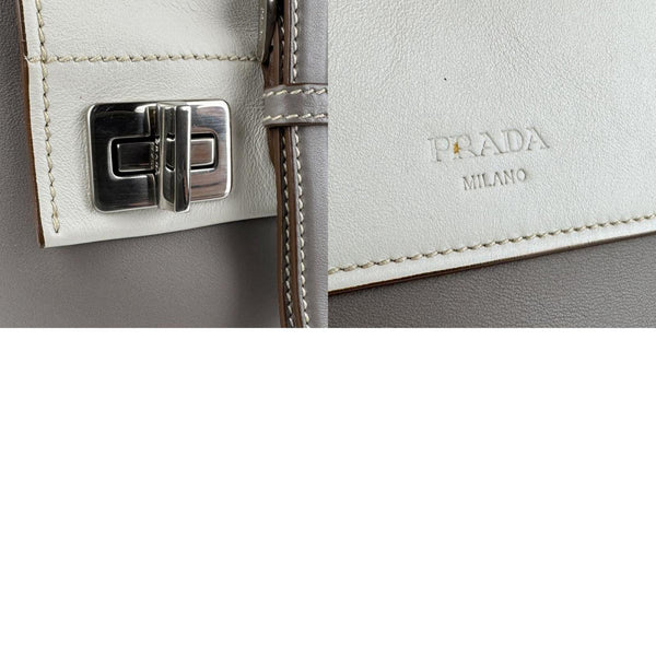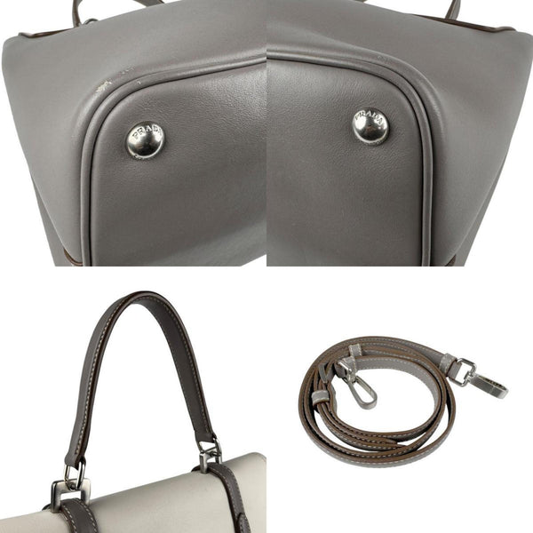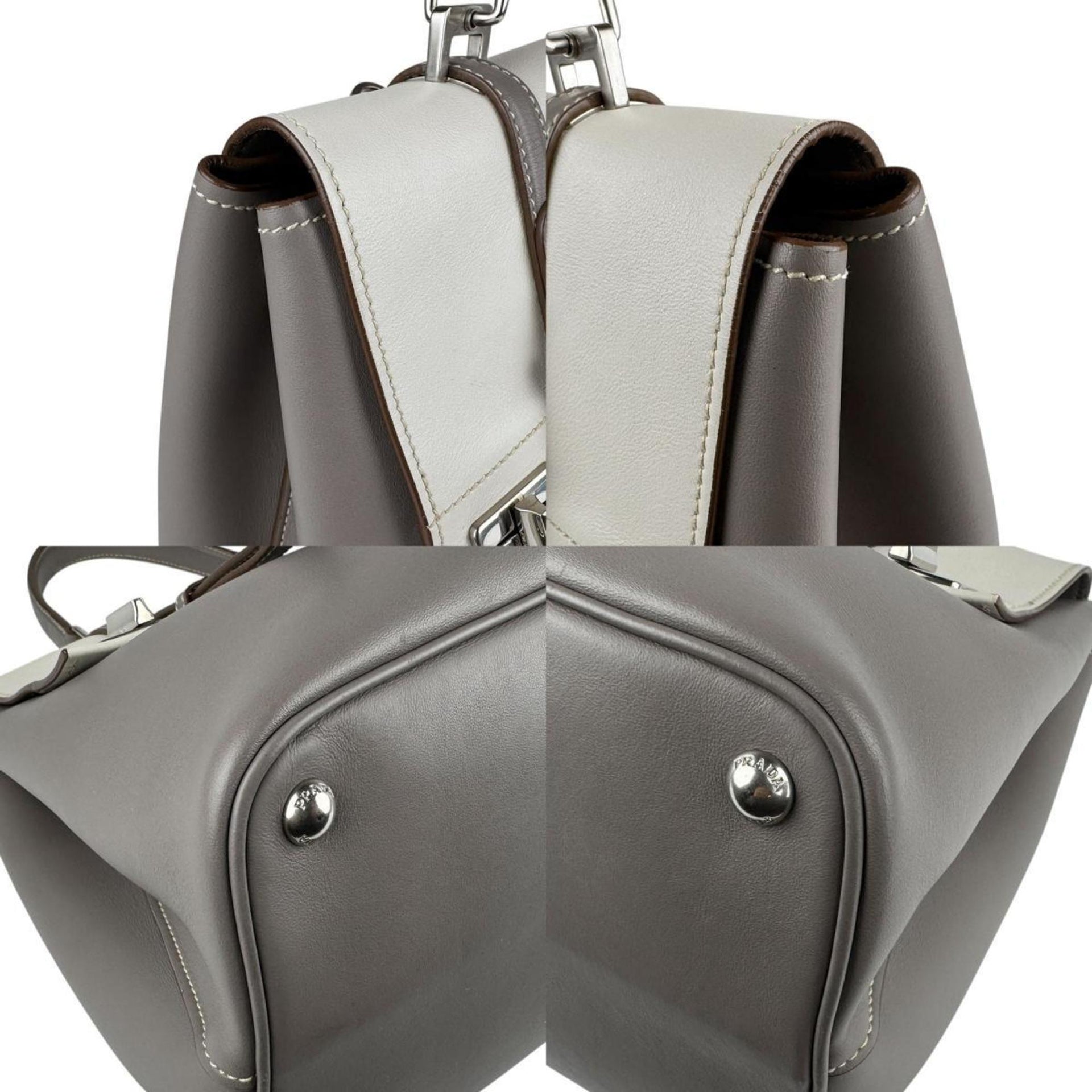 PRADA handbag shoulder bag leather grey off-white silver ladies z5518