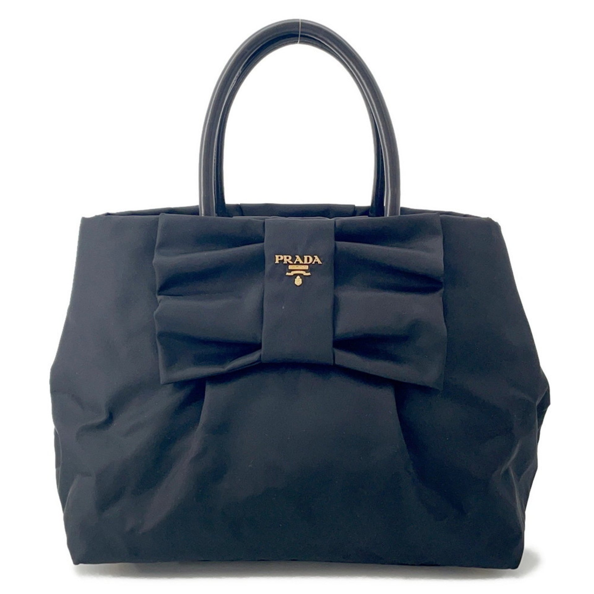 Prada handbag with ribbon and nylon pattern, BN1601, black.