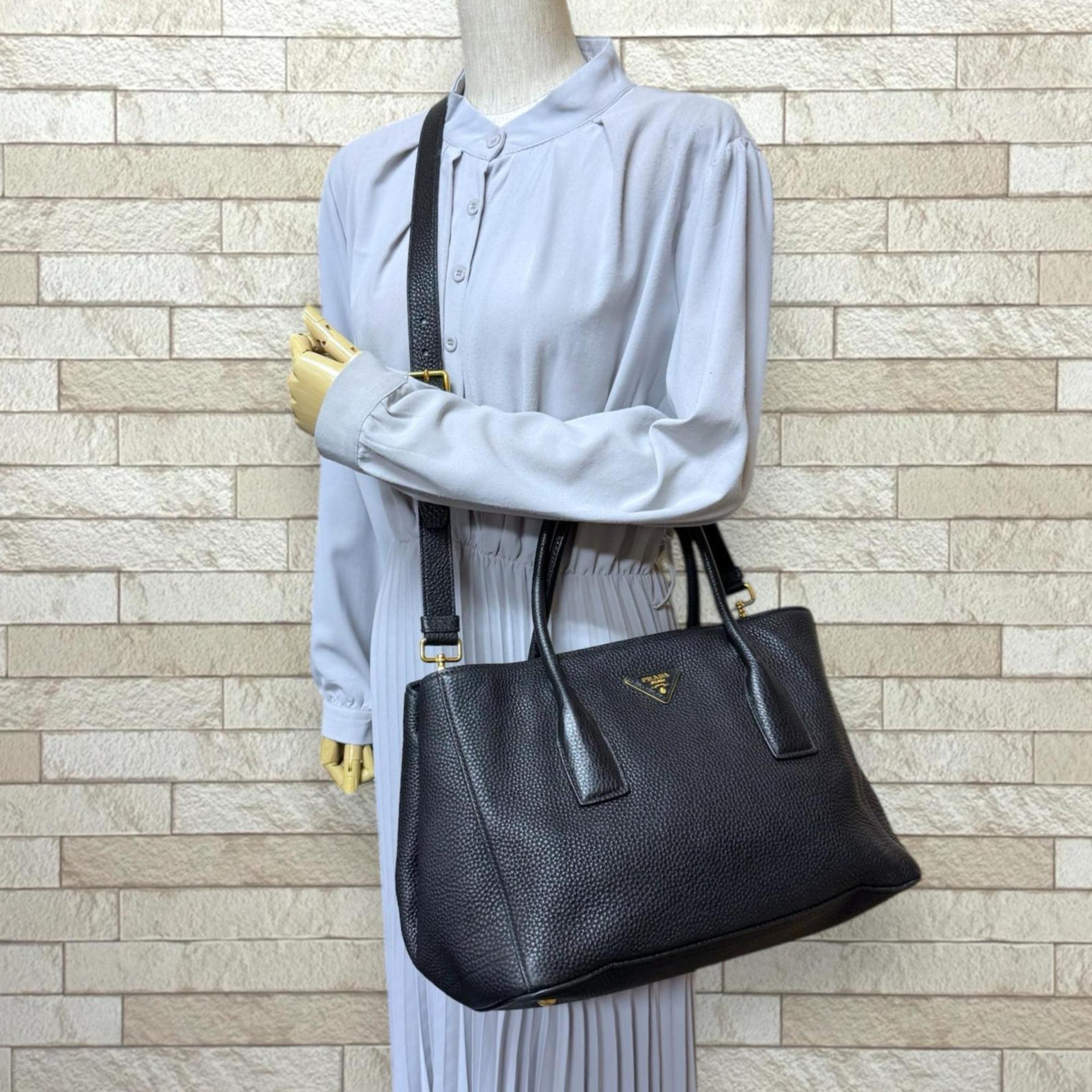 Prada Leather Shoulder Bag BN2808 Black Women\'s PRADA Pre-owned 2-Way