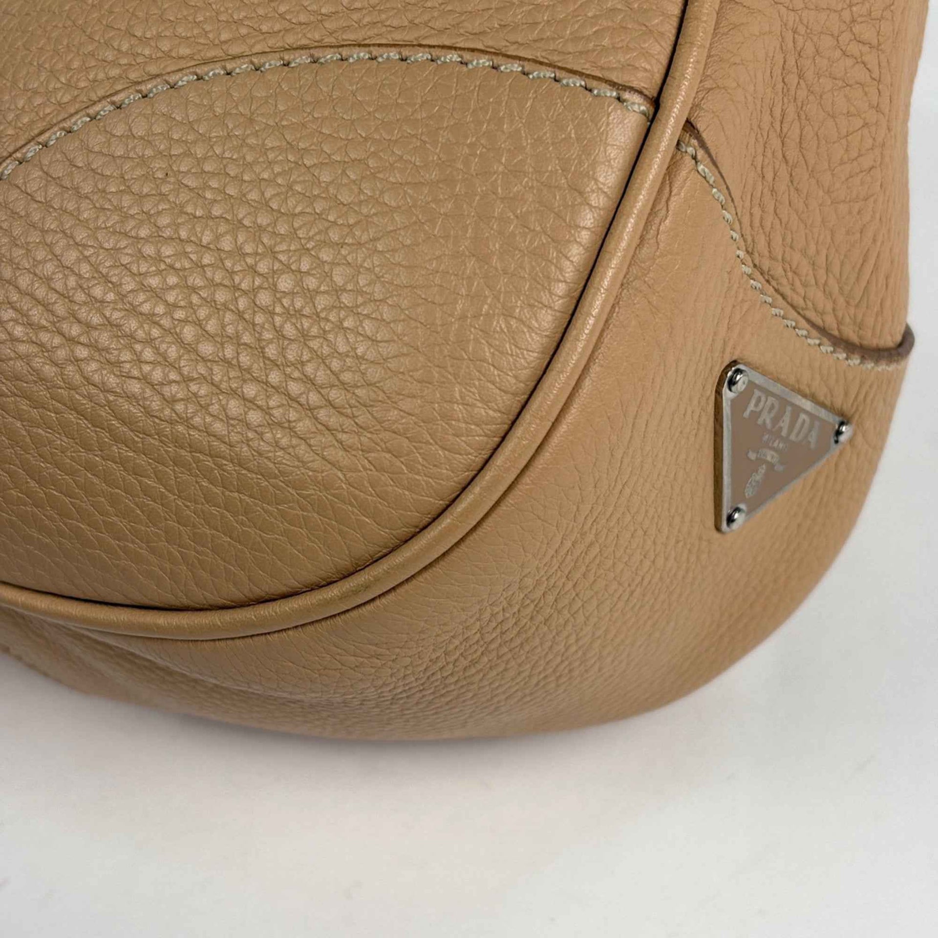 Prada logo plate handbag, shoulder bag, leather, beige, women\'s