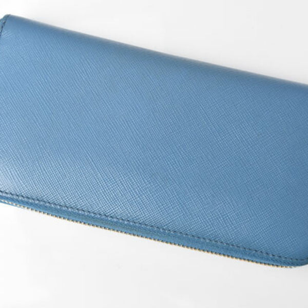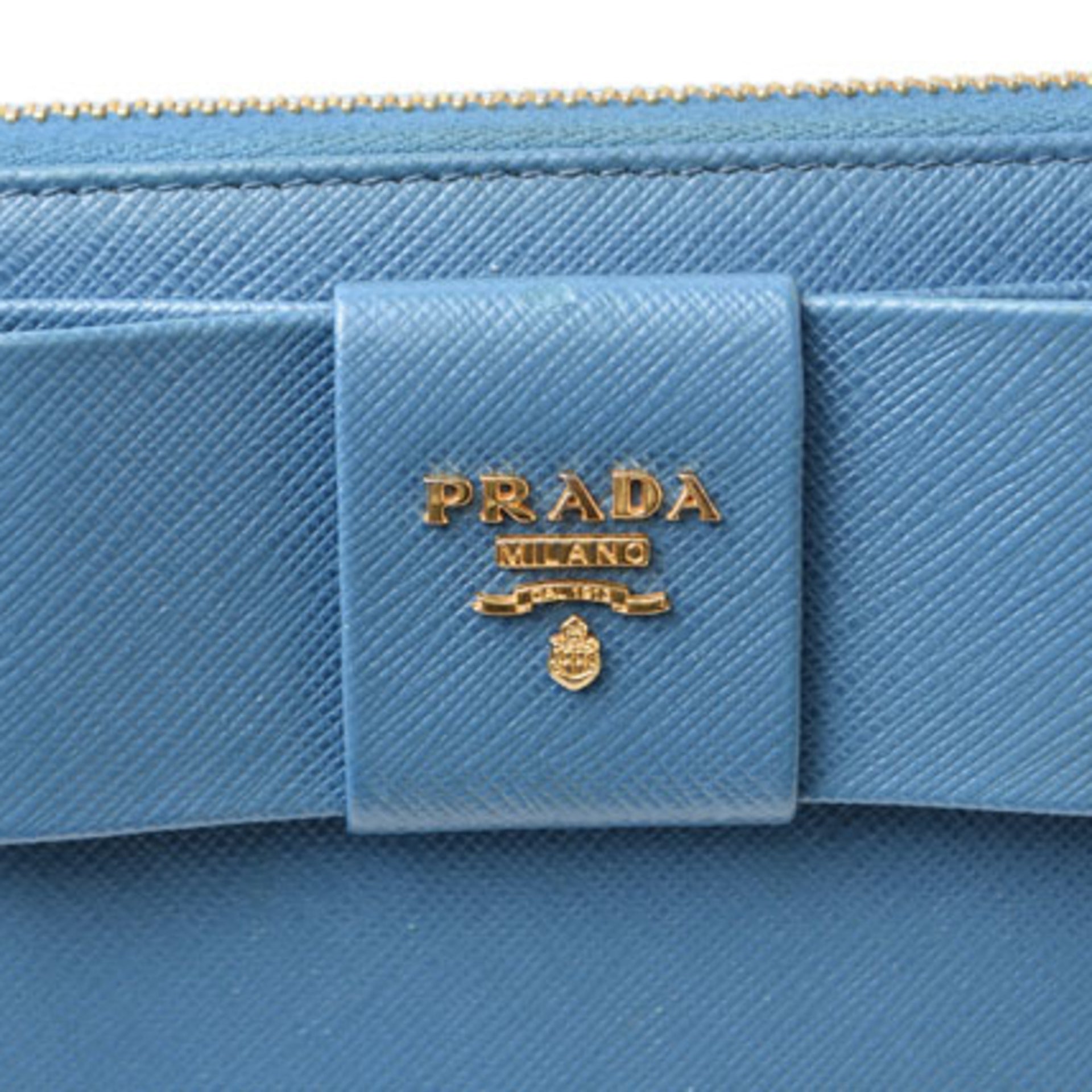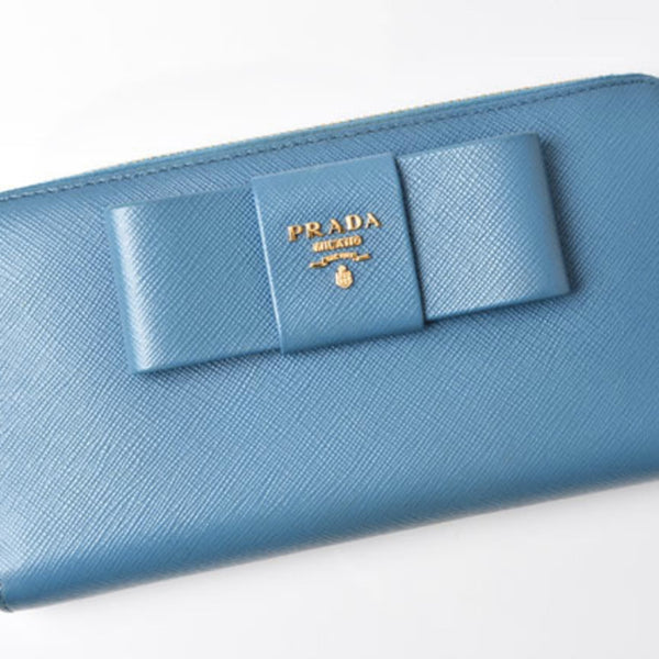 PRADA Long Wallet 1ML506 SAFFIANO FIOCCO Embossed Leather Ribbon Motif Calfskin COBALTO Cobalt