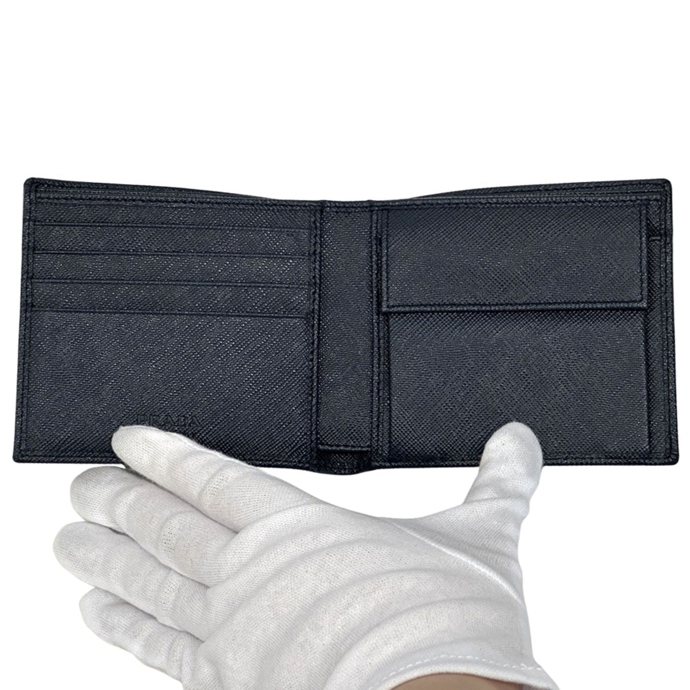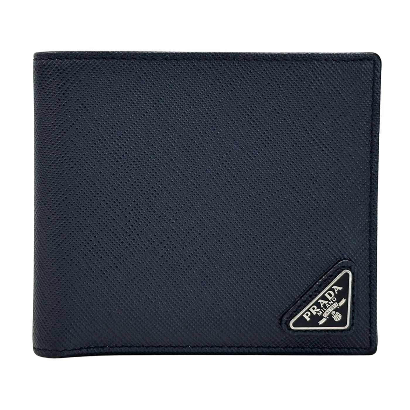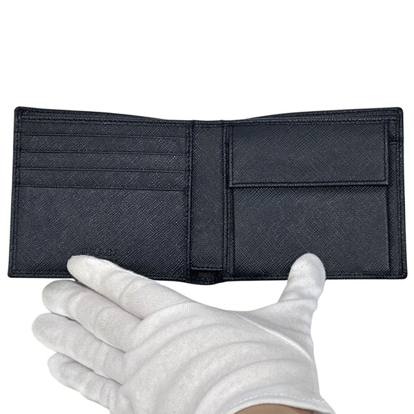 Prada Men\'s Saffiano Navy Bifold Wallet, Compact Mini Wallet