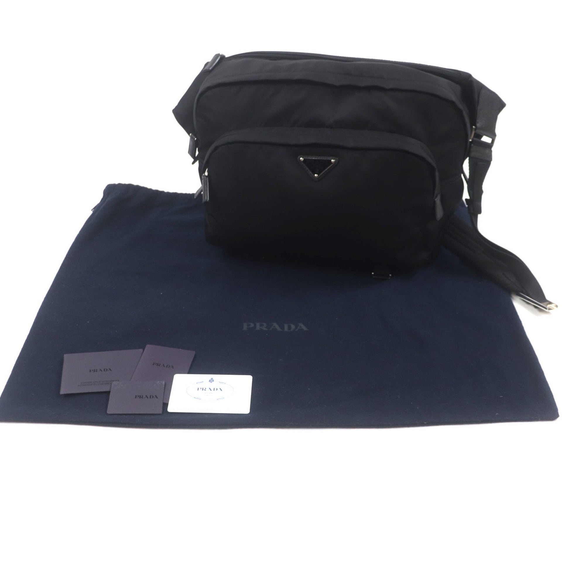 PRADA Montagna Tessuto Saffiano Leather Shoulder Bag (2VH021) with Triangle Logo and Plate, Black, Silver Hardware, Dust Included.