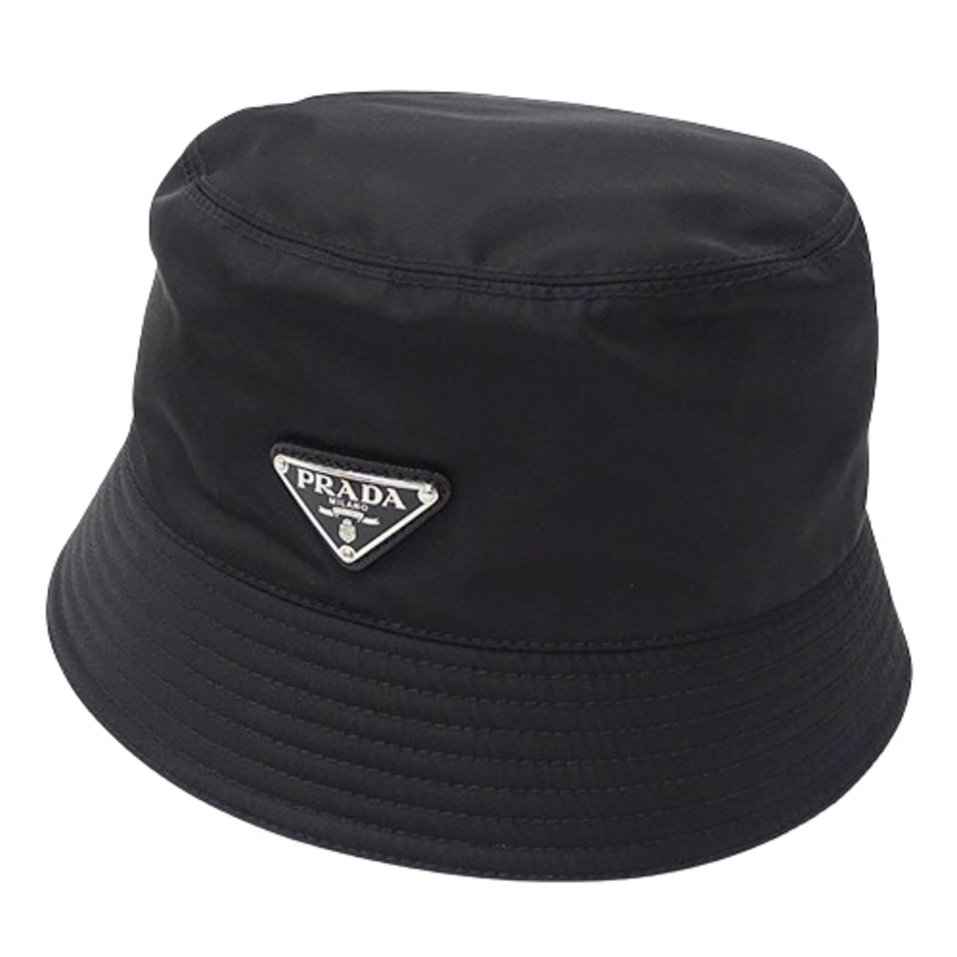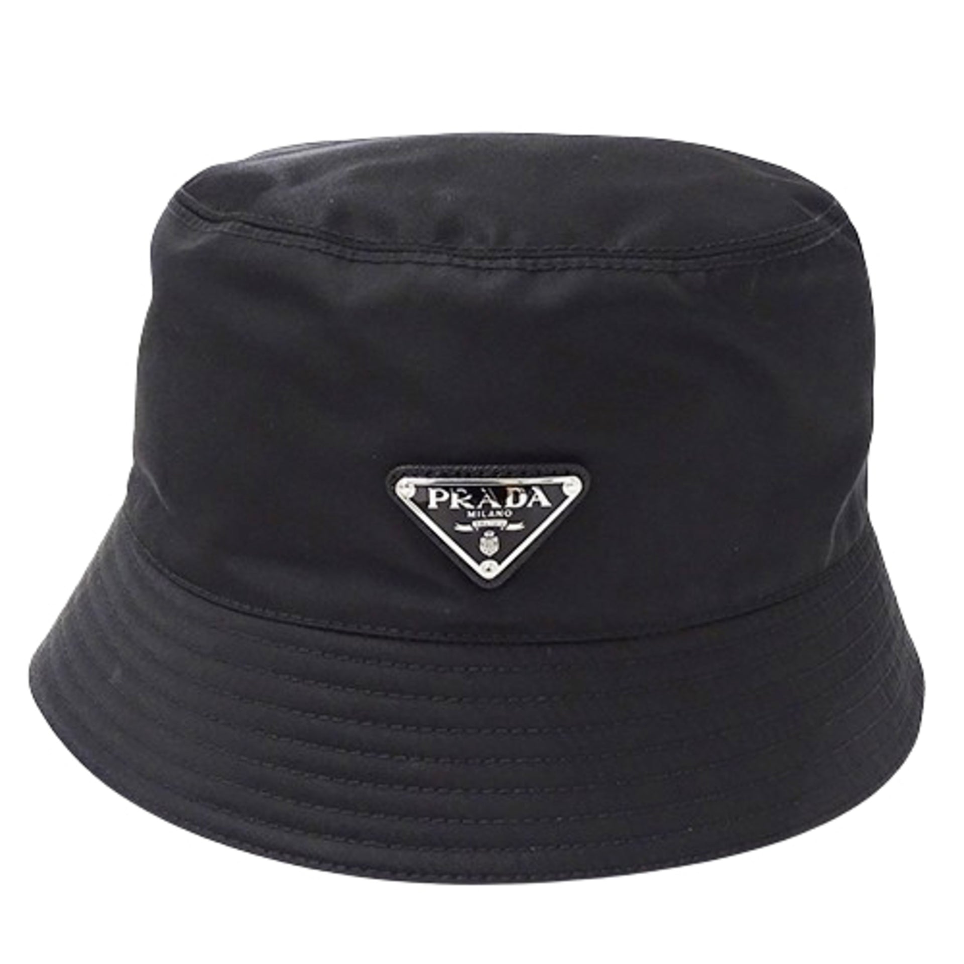 Prada PRADA Hat, Men\'s & Women\'s, Black Nylon Bucket 2HC137 XL, with Triangle Logo Plate