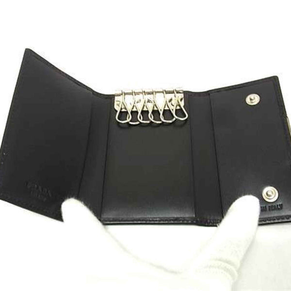 PRADA Prada Key Case - Black Leather 6-Ring Keychain for Men and Women