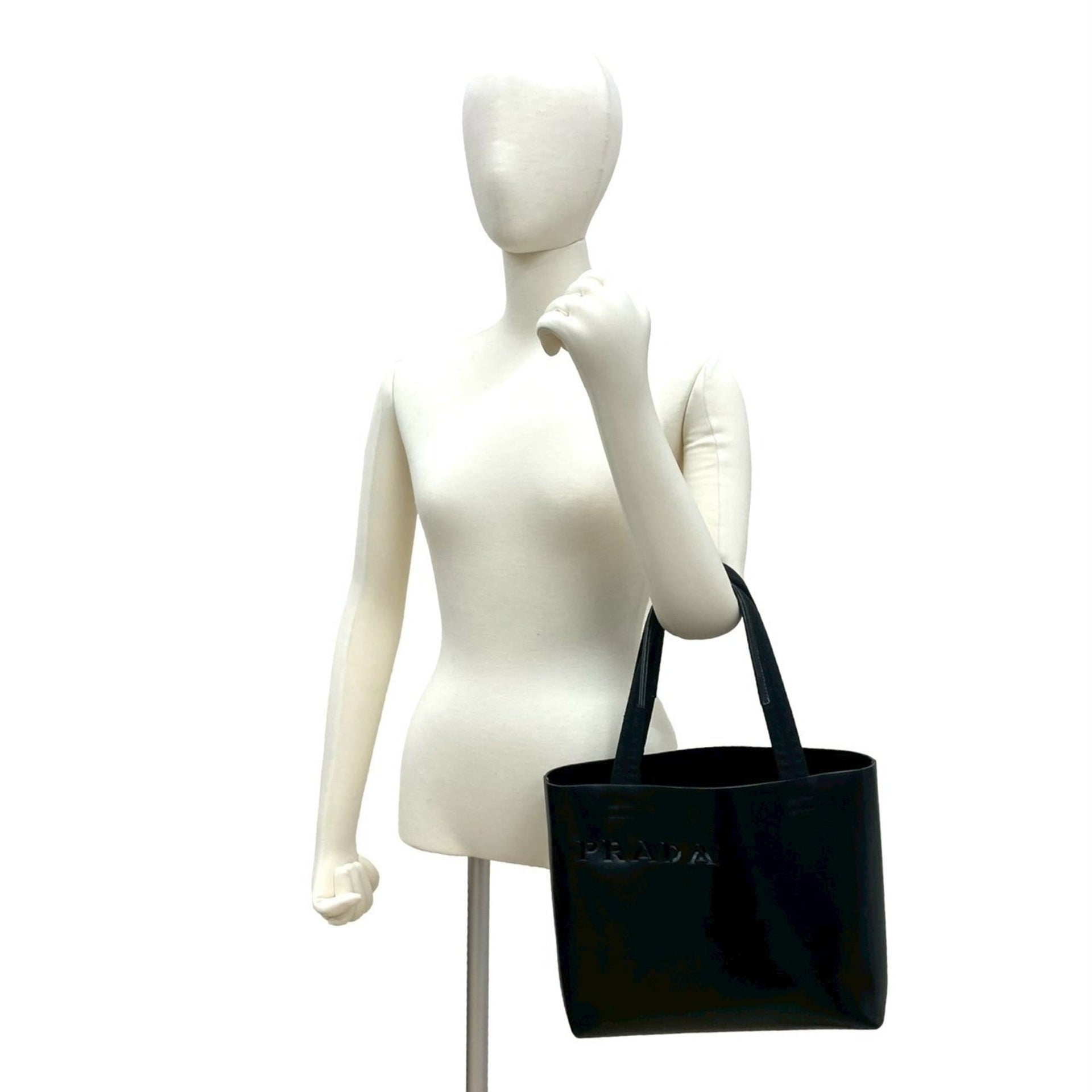 PRADA Prada Logo Cutout Leather and Nylon Handle Tote Bag Handbag Black 42343 with Card