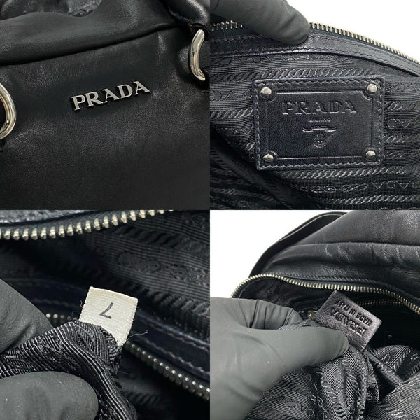 PRADA Prada logo hardware leather zipper handbag mini Boston bag tote black 53803
