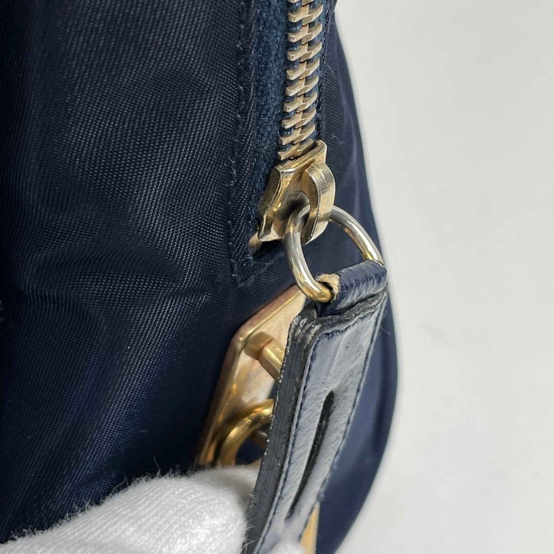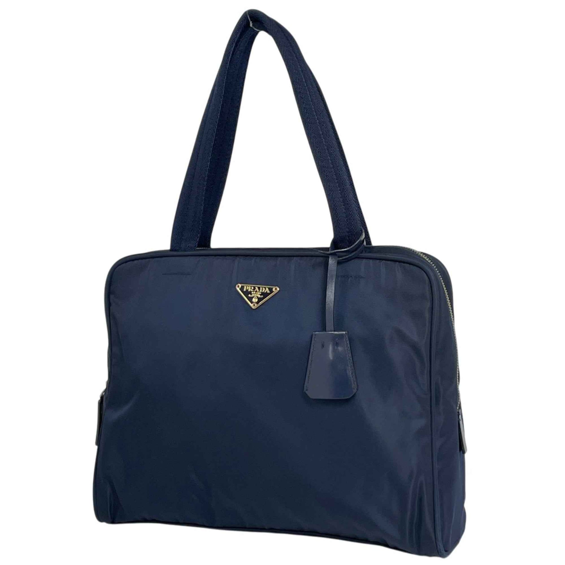 Prada PRADA Logo Plate Handbag Tote Bag Nylon Navy BR0144 Women\'s