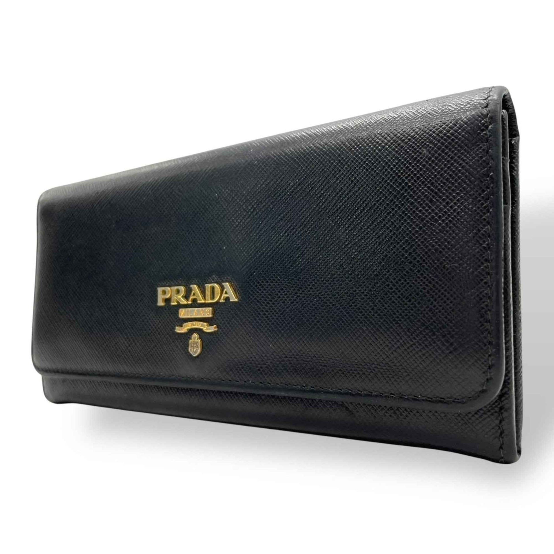 Prada PRADA Long Wallet, Black, Nero Saffiano Leather, Gold Hardware, Logo, 1MH132 2D93 F0002, Men\'s/Women\'s, M1