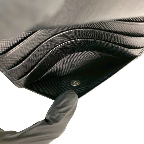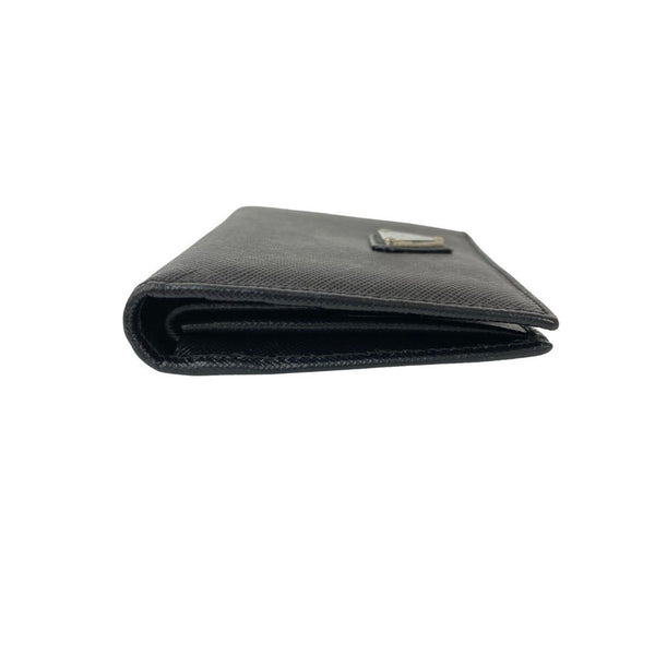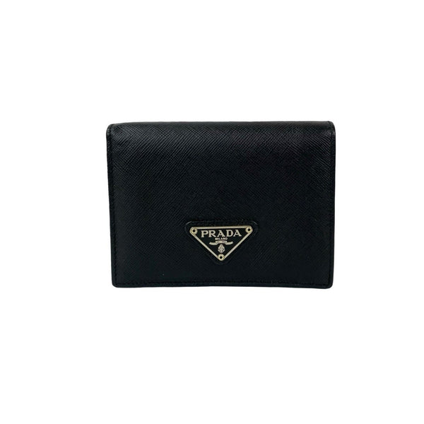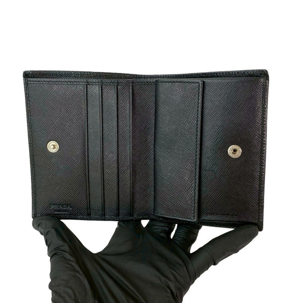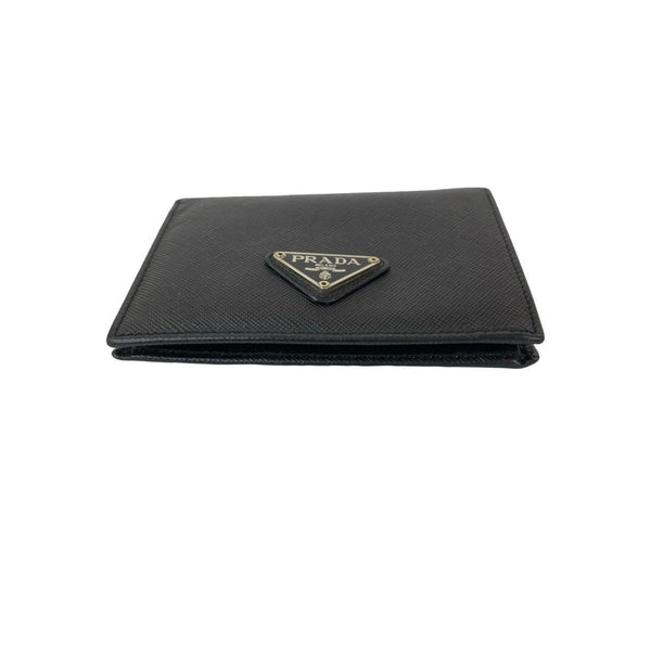 PRADA Prada Triangle Logo Hardware Saffiano Leather Bi-fold Mini Wallet Black 10314