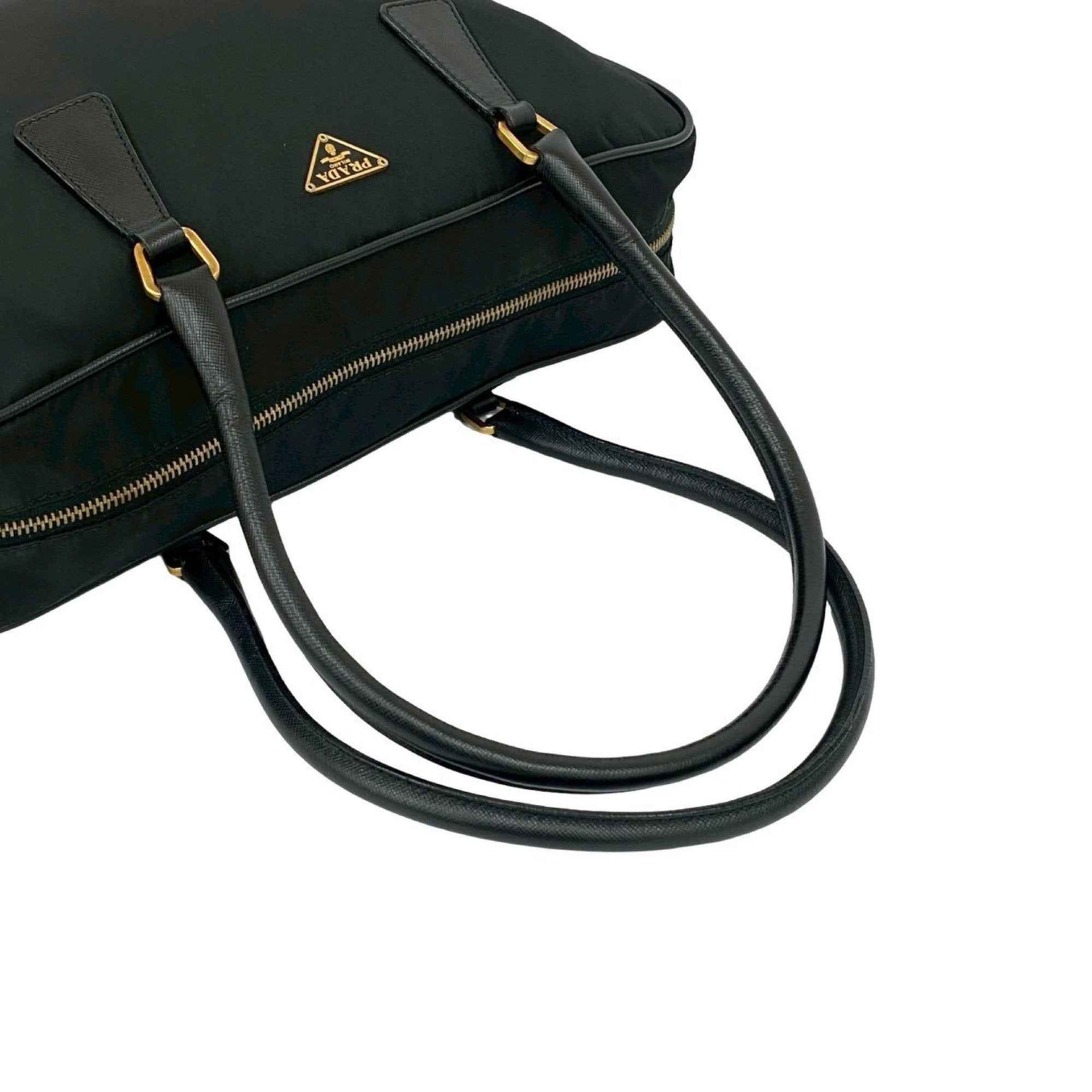 PRADA Prada Triangle Logo Metal Hardware Tessuto Nylon and Saffiano Leather Handbag Mini Tote Bag Black 79375