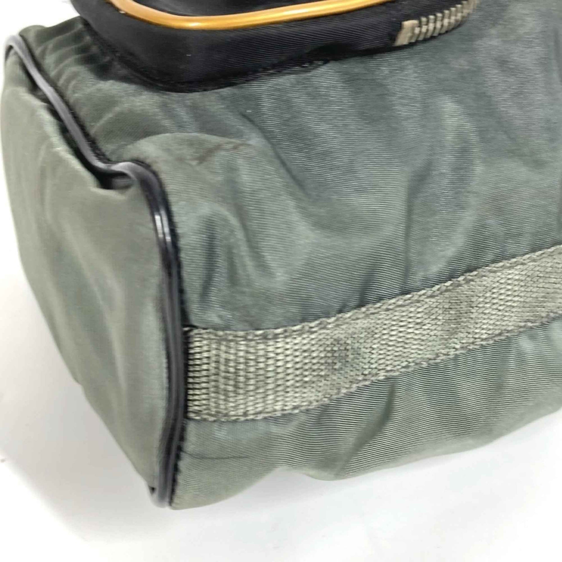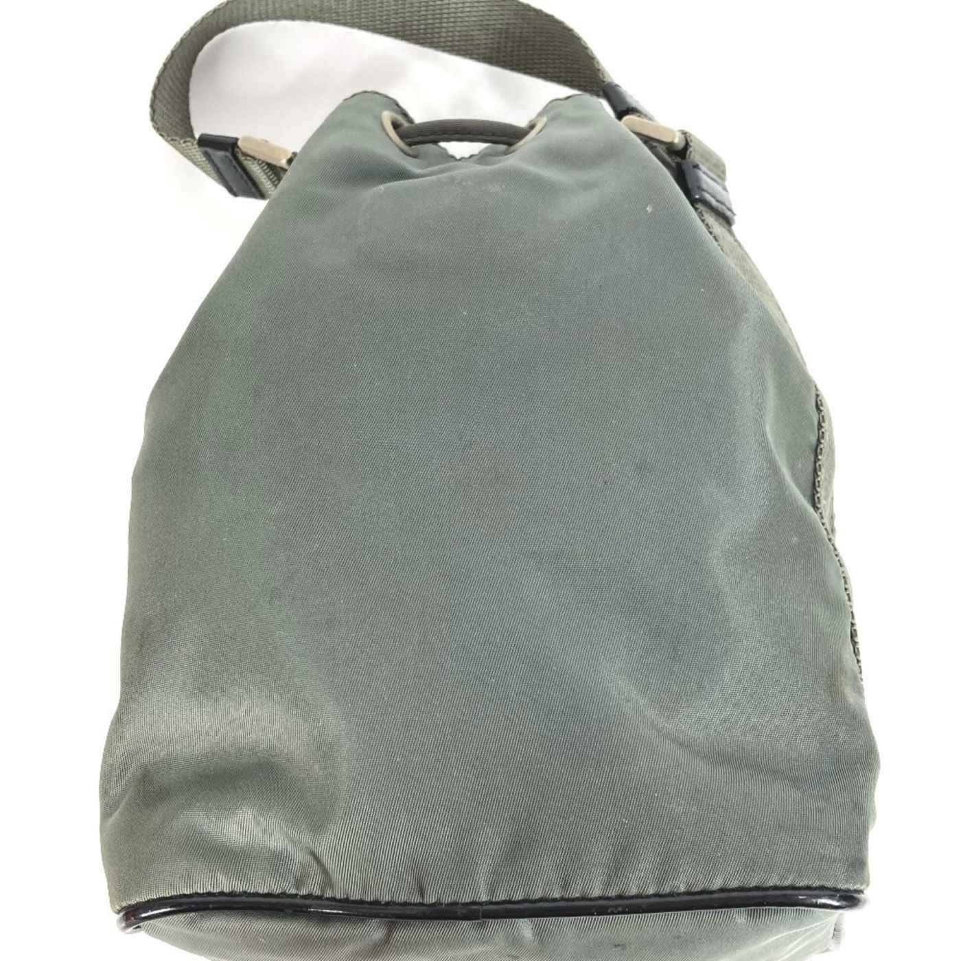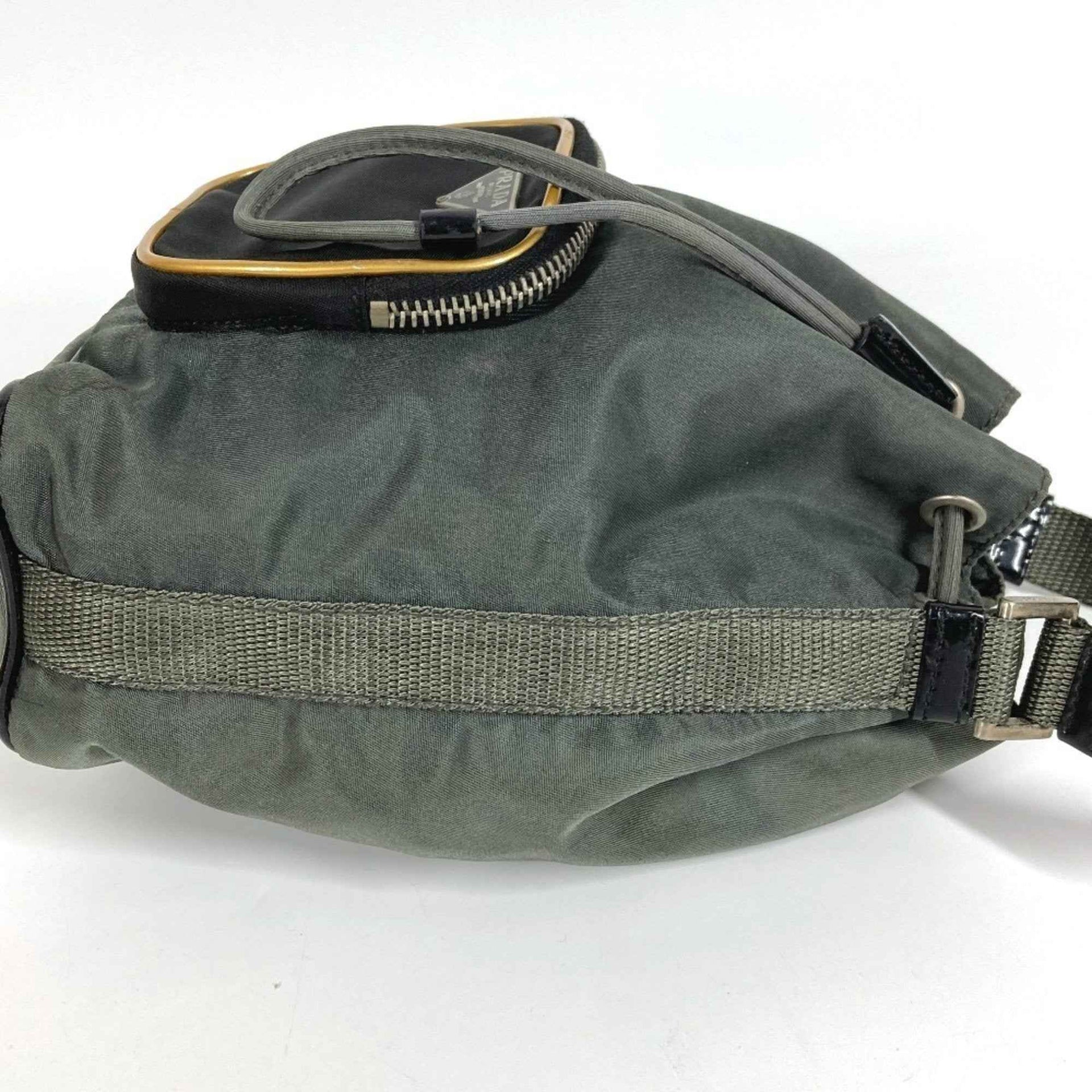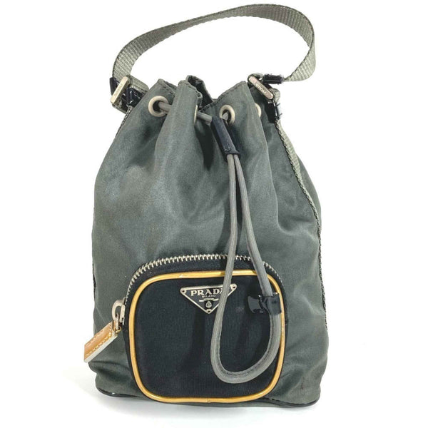 PRADA Prada Triangle Logo Plate Bag Mini Pouch Drawstring Handbag Leather Nylon Men\'s Women\'s Gray