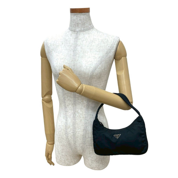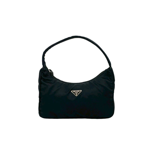 PRADA Prada Triangle Logo Silver Hardware Plate Tessuto Nylon Mini Handbag Pouch/Accessory Case Black 18402