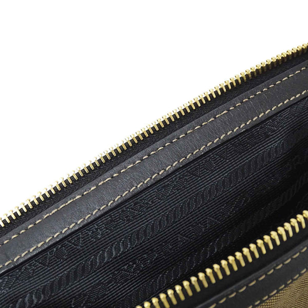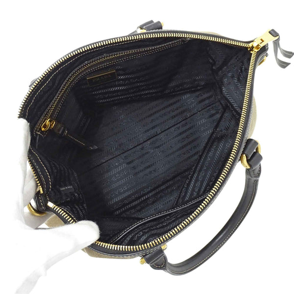 Prada PRADA Women\'s Brand Tote Bag, Handbag, Shoulder 2-Way, Logo Jacquard Canvas, Beige, Black