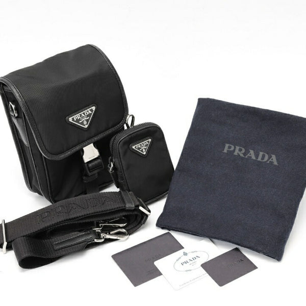Prada Re-Nylon x Saffiano Leather Mini Shoulder Phone Holder 2VD043 Black (Nero) S-159028