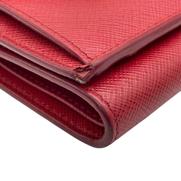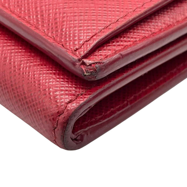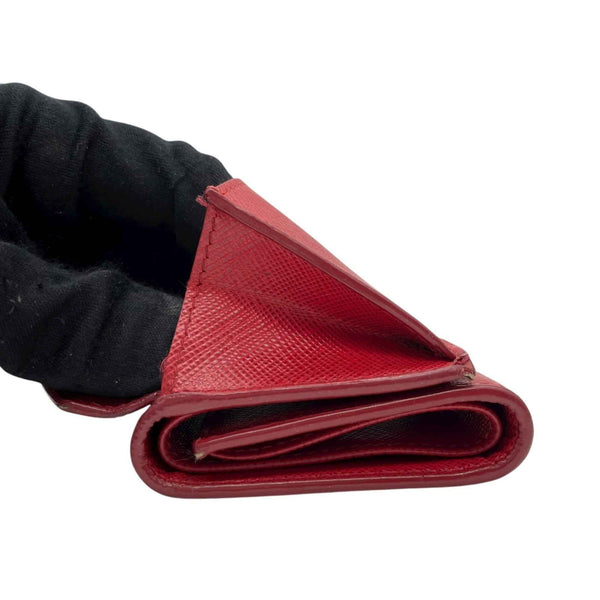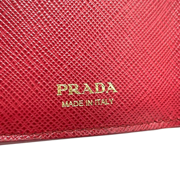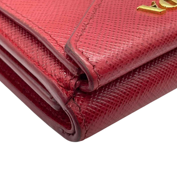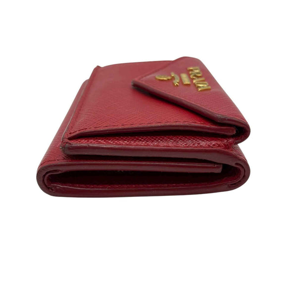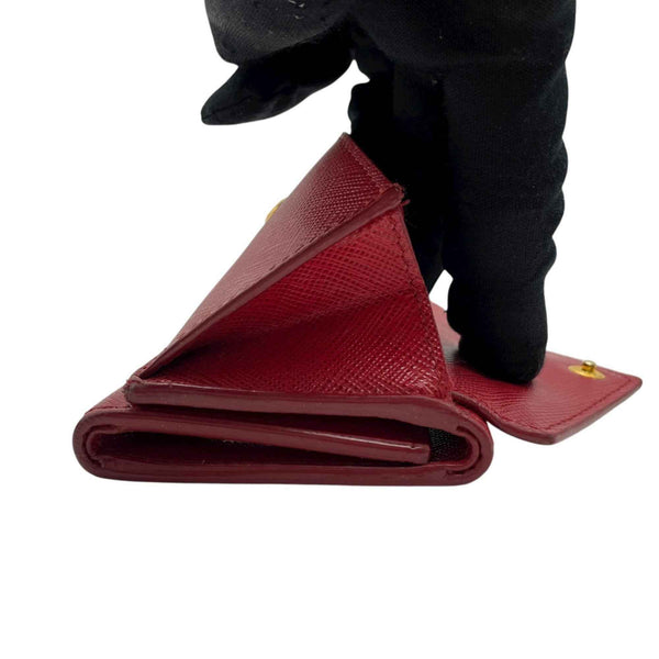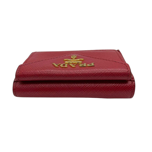 Prada Saffiano Leather Tri-Fold Mini Wallet, Red with Gold Logo, Compact Wallet M5